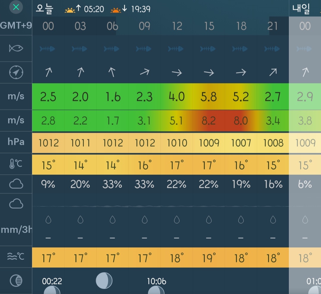 □ 바다상황 : 바람 2~3단, 파도 약간