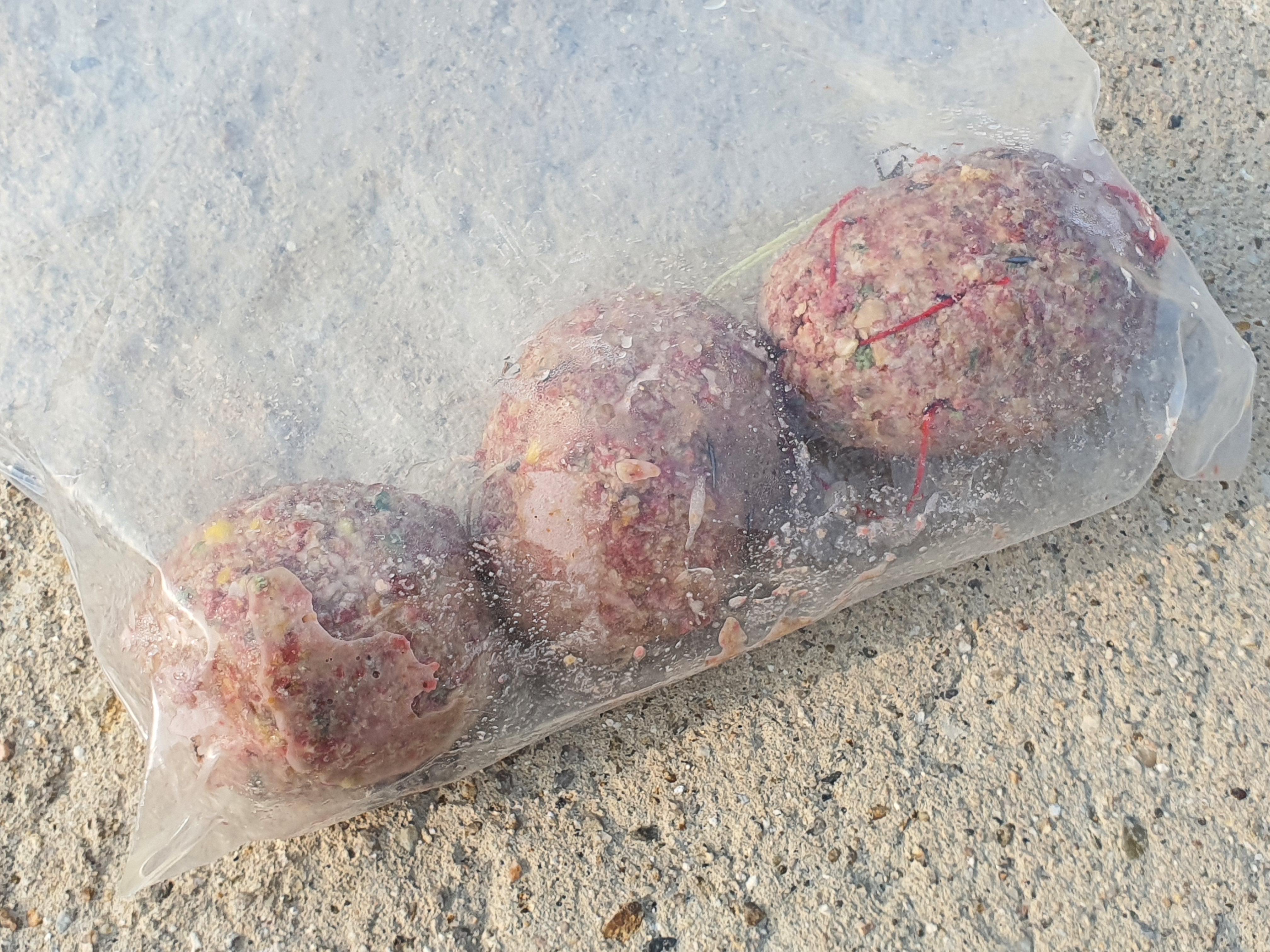 지난번 출조때 숭어가 엄청 다니는 걸 보고, 2년전부터 냉동고에 보관하고 있던 숭어채비를 가져 왔습니다. BT30-425에 밑밥을 둥글게 만든 숭어채비를 봉돌과 함께 달아 던져봅니다.