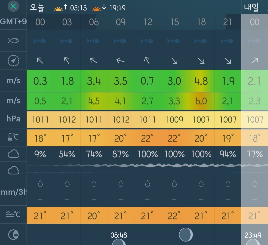□ 바다상황 : 바람 1단 이하, 파도 없음