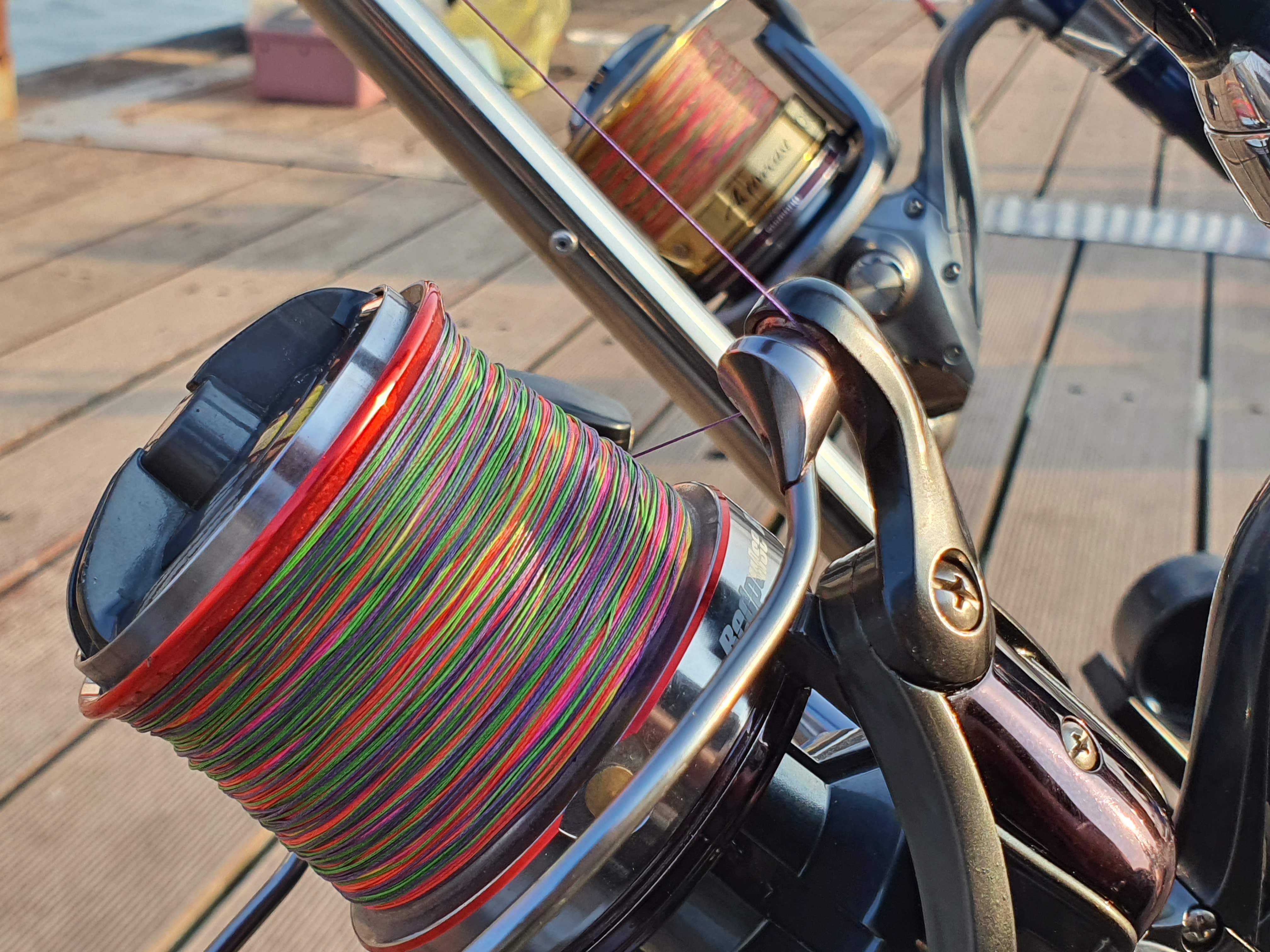 그리고, 한참동안 입질도 없습니다. 괜시리 장비들을 사진에 담아보네요. 오시리스 8합사 3호를 꽤 오래 쓰고 있는데, 여전히 강한 내구성과 물빠짐이 조금 있지만 멀티 컬러를 선명하게 보여주고 있네요.