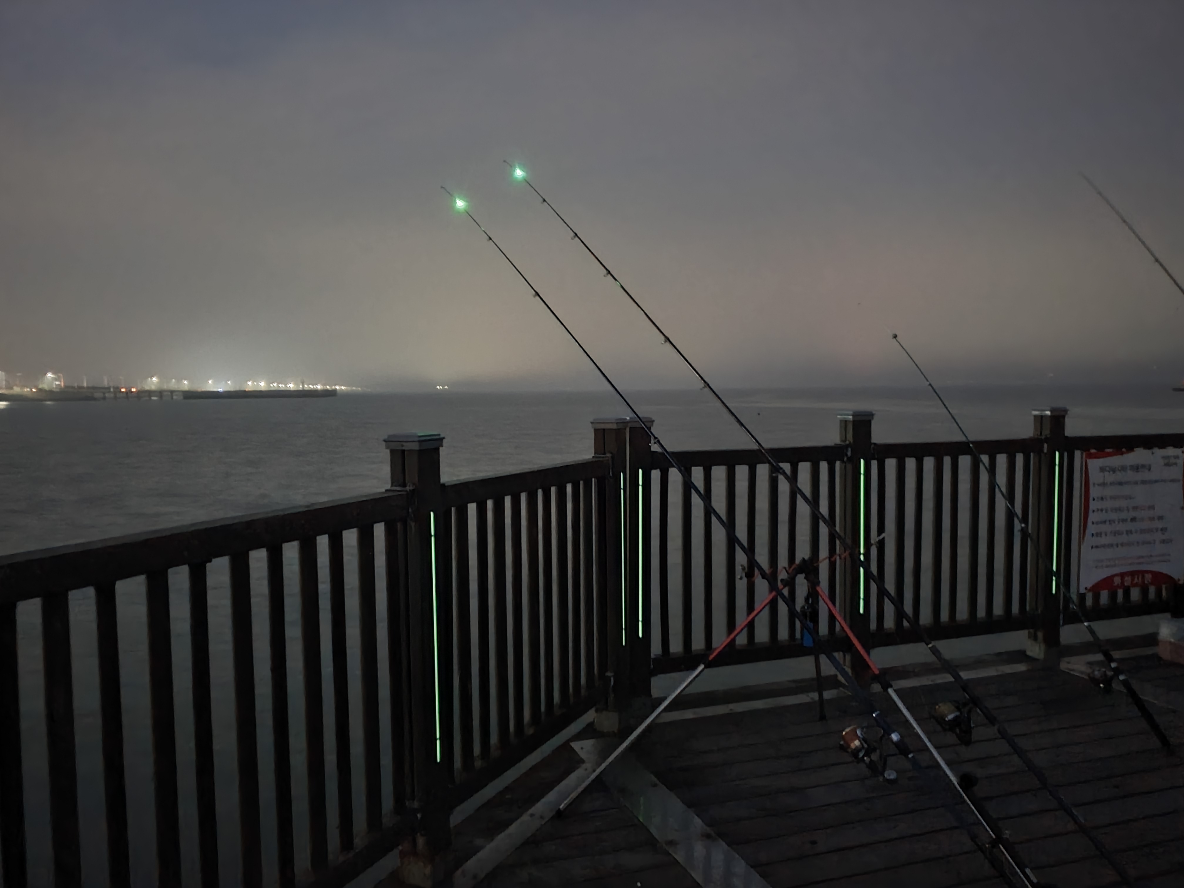 어느새 해는 지고, 밤낚시를 위해서 줄보기캐미와 끝보기캐미를 장착합니다. 그리고, 입질도 거의 없이 꽝을 친 도리와 도리지인은 철수를 합니다.