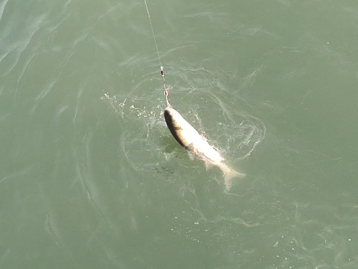 입질이 잠깐 있다가 조용하길래 미끼 털린 듯 해서 회수하는데, 백조기 한마리가 올라옵니다. 오랜만에 보는 궁평항 백조기이네요.