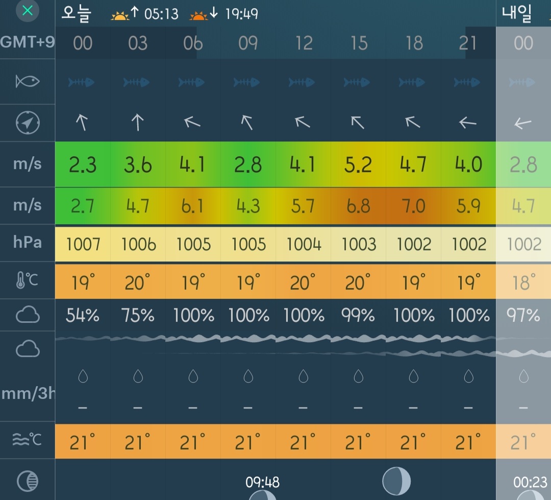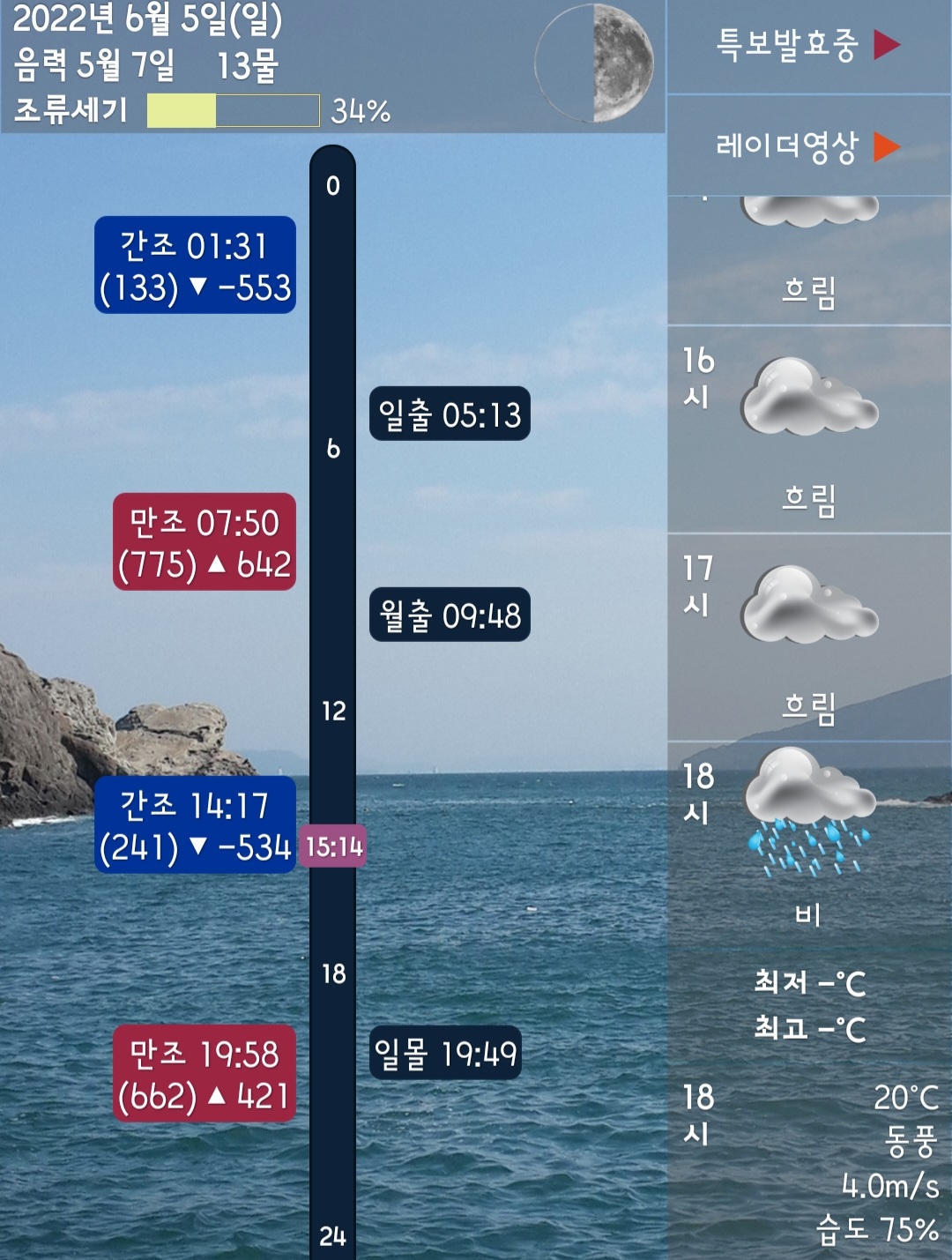 □ 바다상황 : 바람 5단 이상, 파도 있음