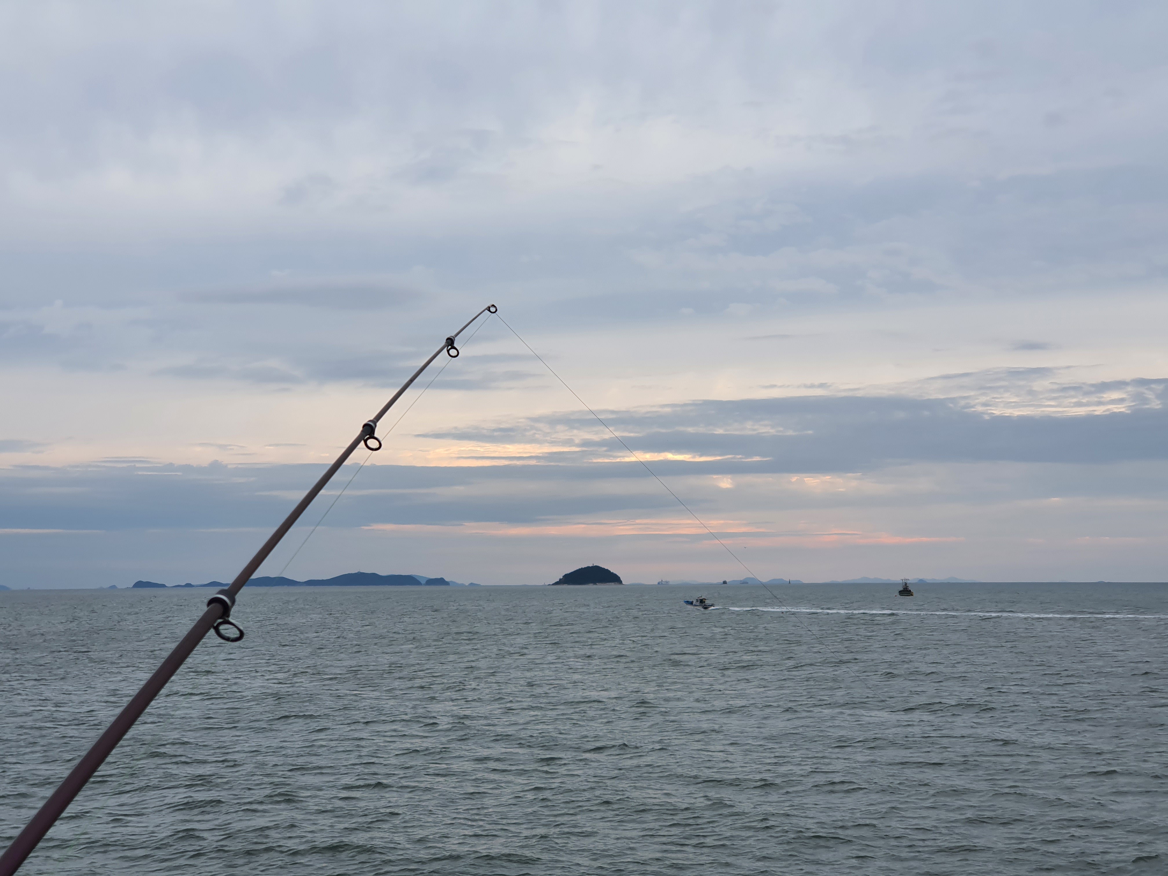 내항 90도 방향으로 캐스팅하니 라인이 내항쪽으로 계속 가네요. 그건 둘째치고 강하게 부는 바람에 초리가 춤을 추어 입질은 전혀 파악이 안됩니다.