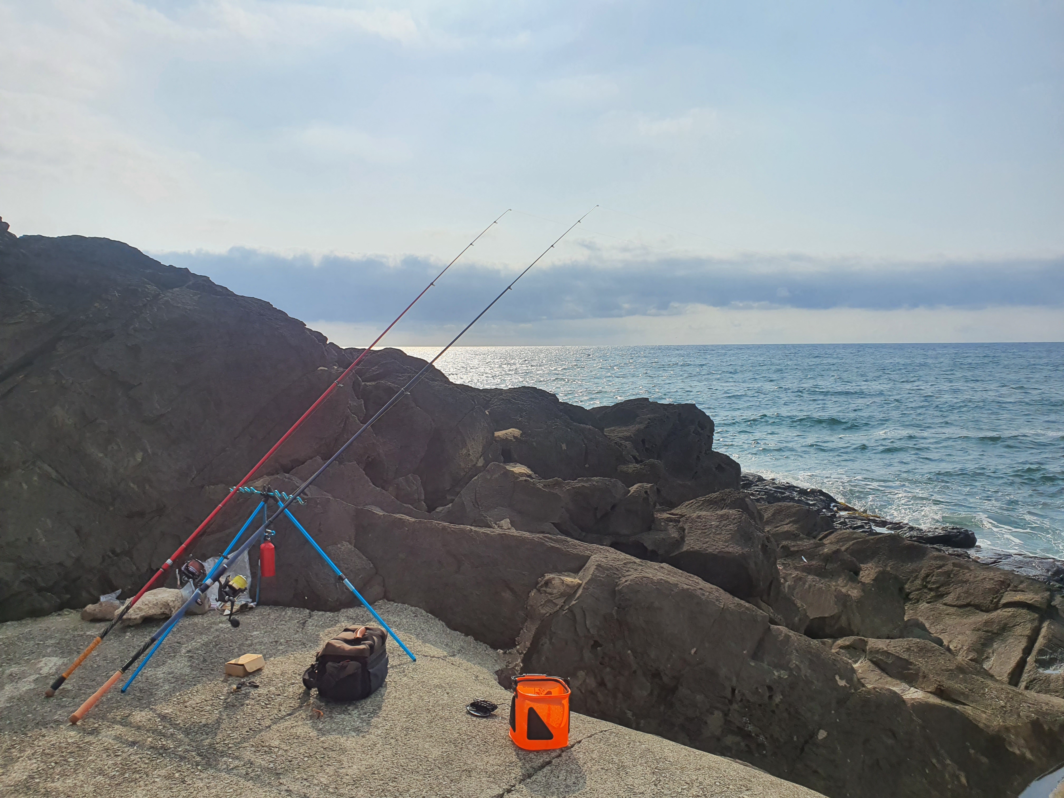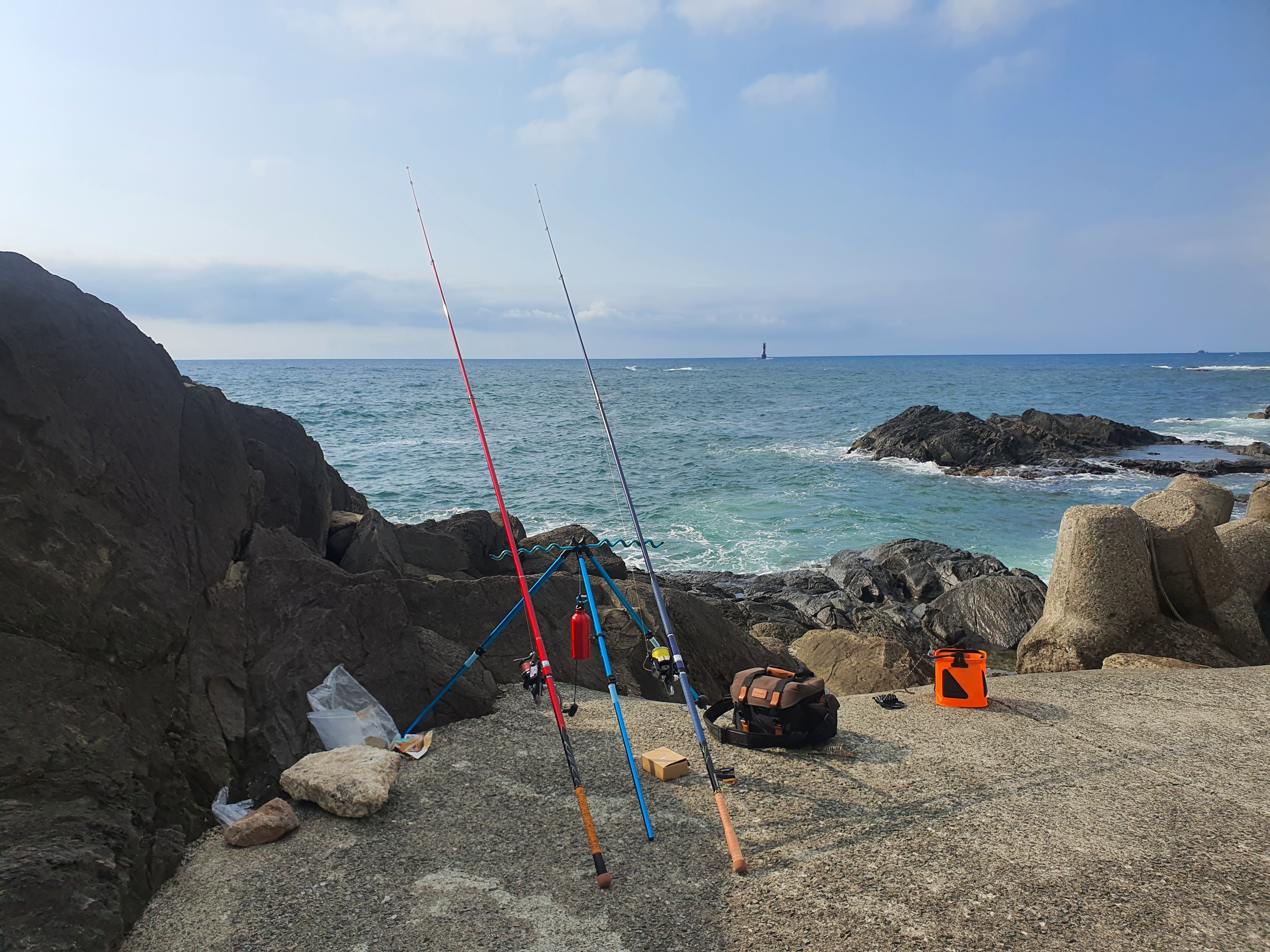 주말휴일을 이용하여 오랜만에 출조한 동해 포인트는 구룡포 카페니어바이 앞 작은 항구 옆 포인트였는데요. 바람과 파도와의 싸움도 있었지만, 입질조차 없었던 꽝친 출조였는데요. 지난 서해 궁평항 출조부터 2연꽝을 달성중에 있습니다.