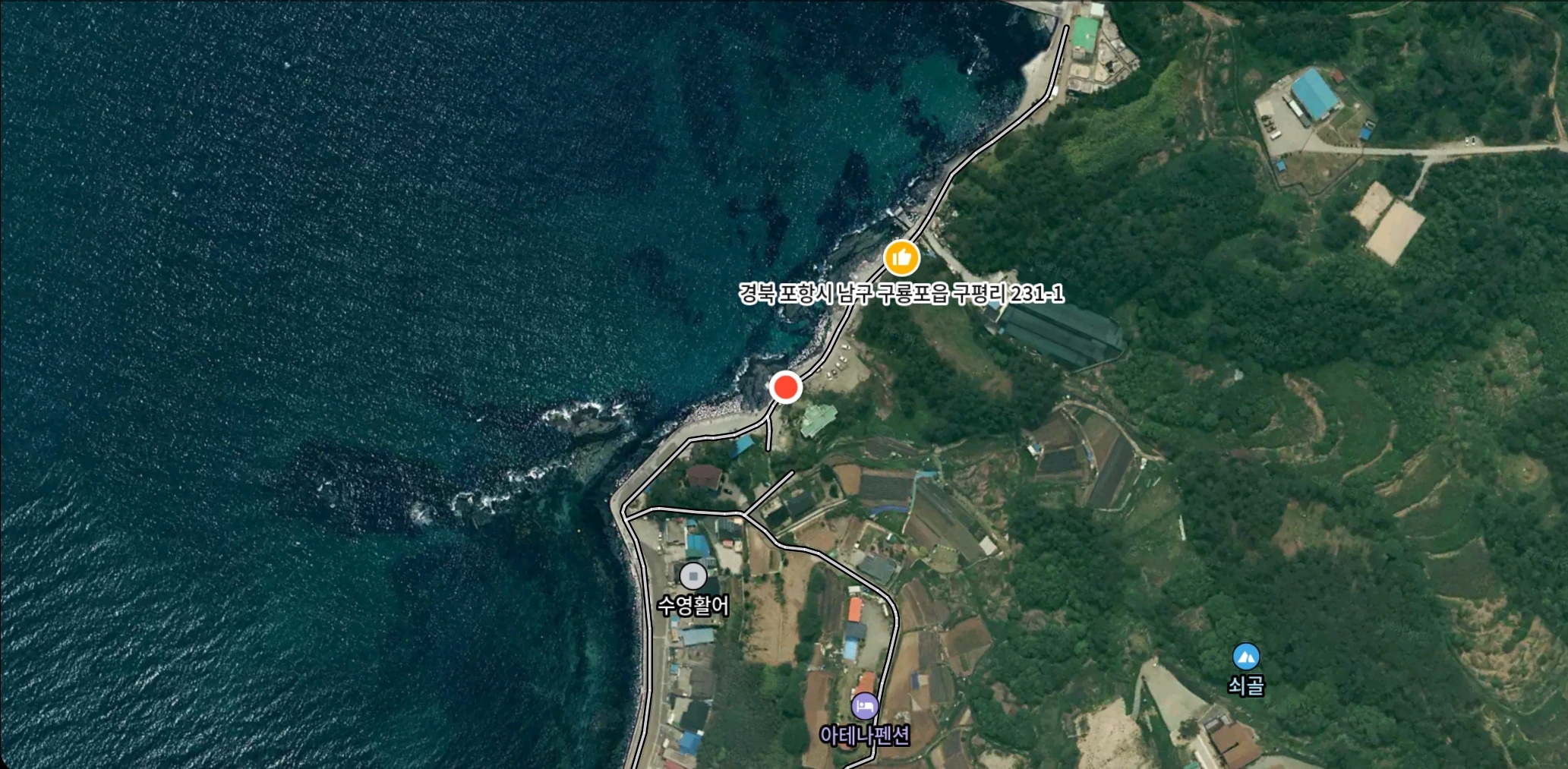 그냥 철수하기에는 아쉽기에 해변 도로를 달리며, 구룡포항까지 이동하며 다음 원투낚시 포인트를 찾아봤으며, 구룡포항에서 괜찮은 포인트를 확인하고 인근 중식당에서 점심을 해결하고 복귀했네요.