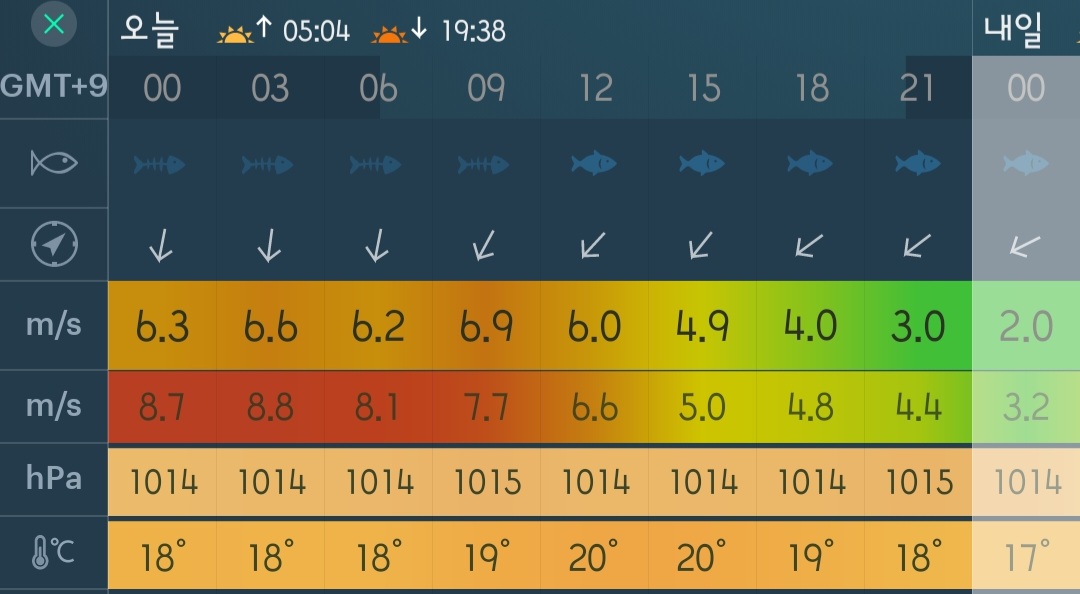 □ 바다상황 : 바람 3~5단, 파도 높음