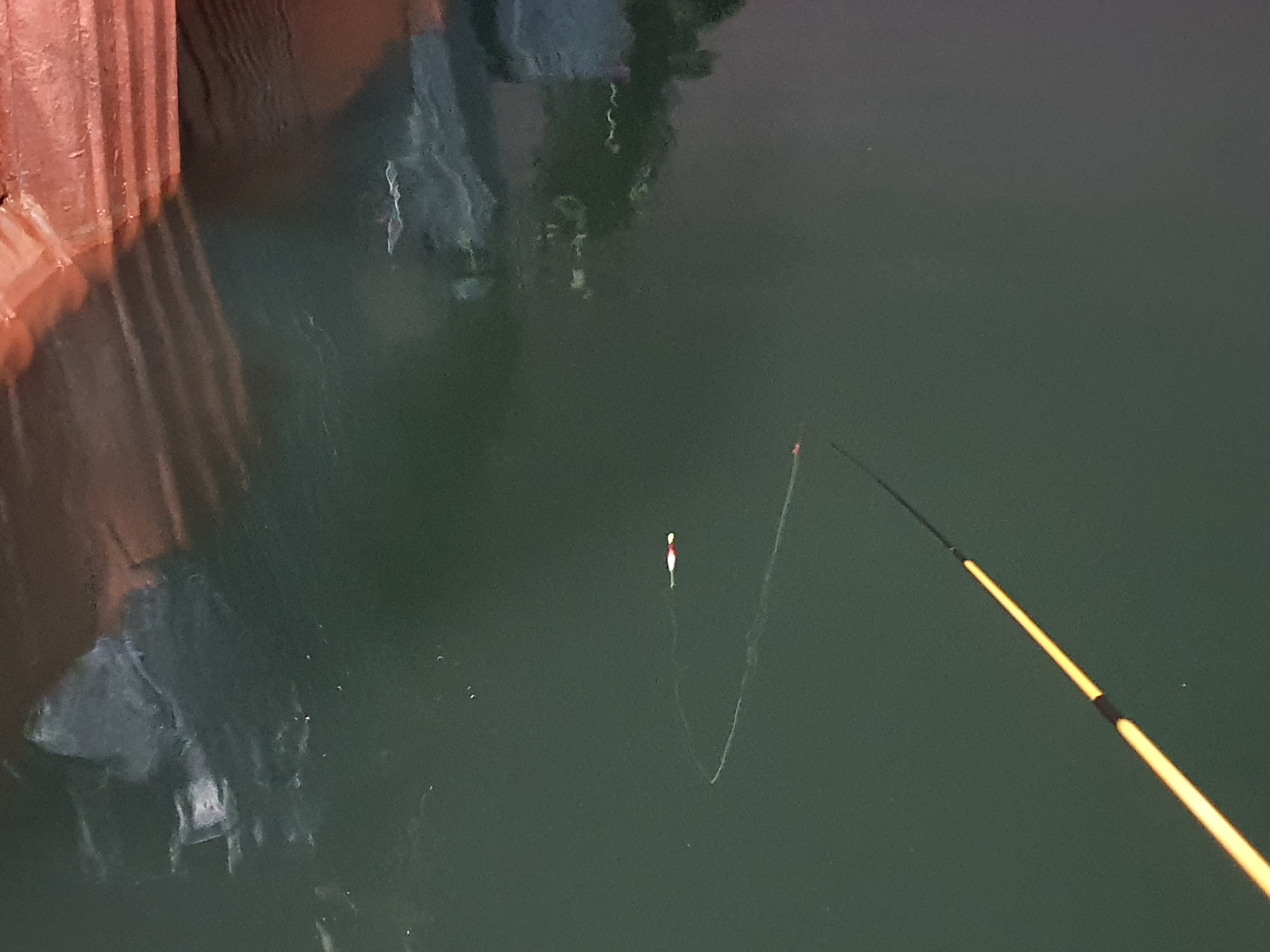 원투낚시도 충분히 할 수 있는 환경이기는 했지만, 민장대로 새우미끼로 찌낚시를 해 봤습니다. 항구 직벽 아래쪽으로 많은 치어들이 있어서 입질은 있지만 바늘이 커서 물지를 못하더군요.