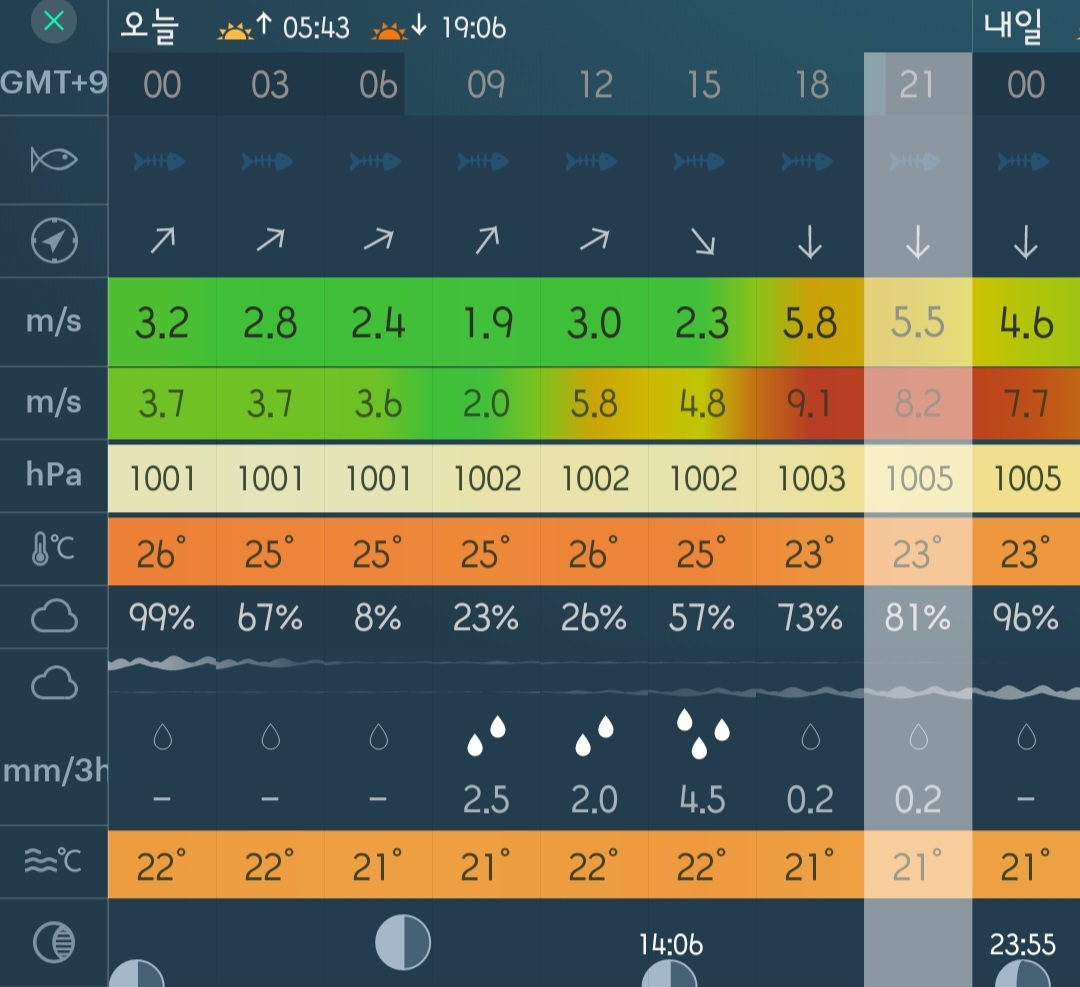 □ 바다상황 : 바람 1~3단, 파도 낮음