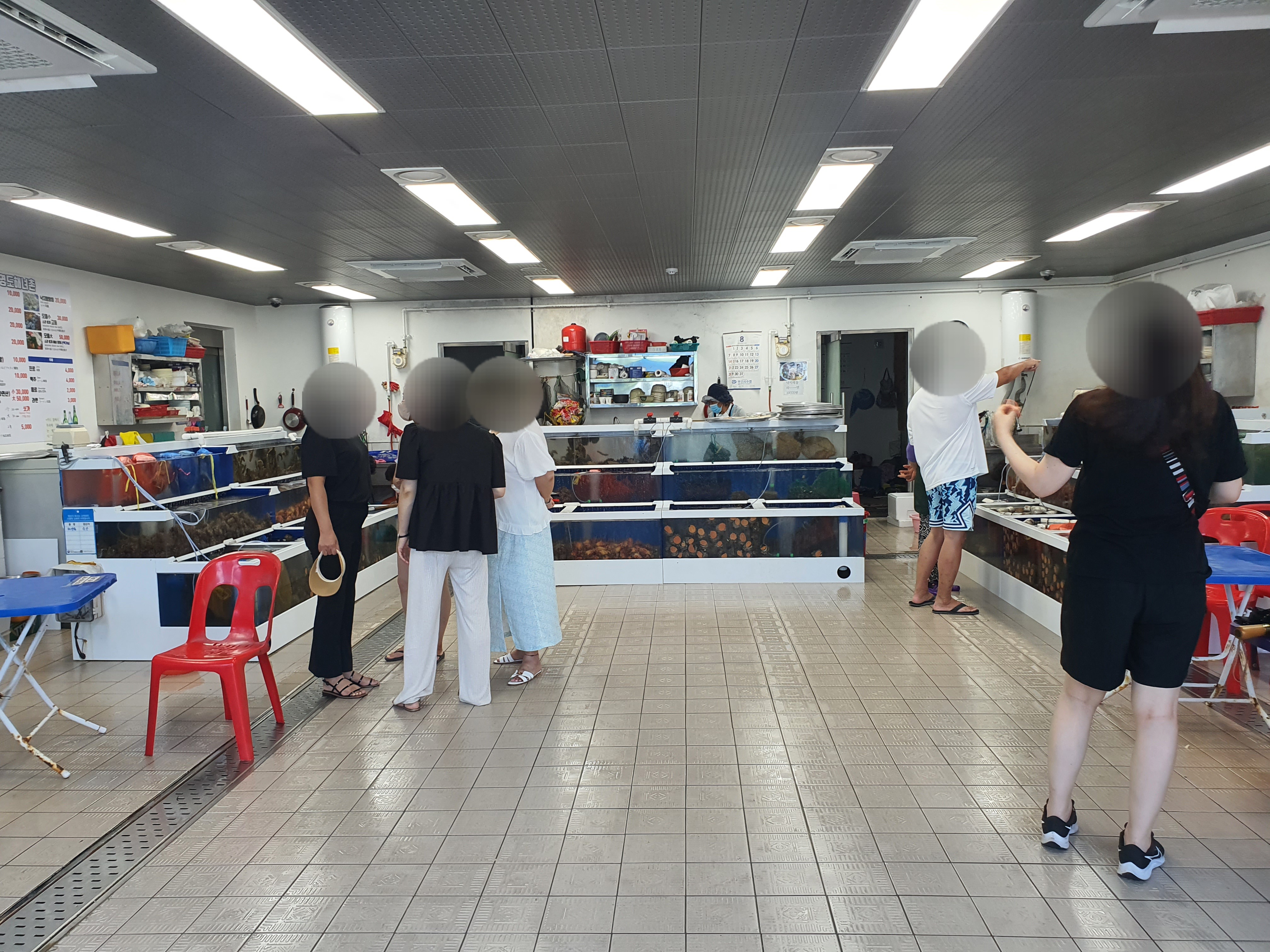 일단 해산물을 구매해야 하기에 건물 1층의 해산물판매장으로 들어갑니다. 건물이 최근에 지어진 듯 깔끔한 첫인상이더군요. 무엇보다 빵빵한 에어컨 바람에 시원해서 좋았습니다.