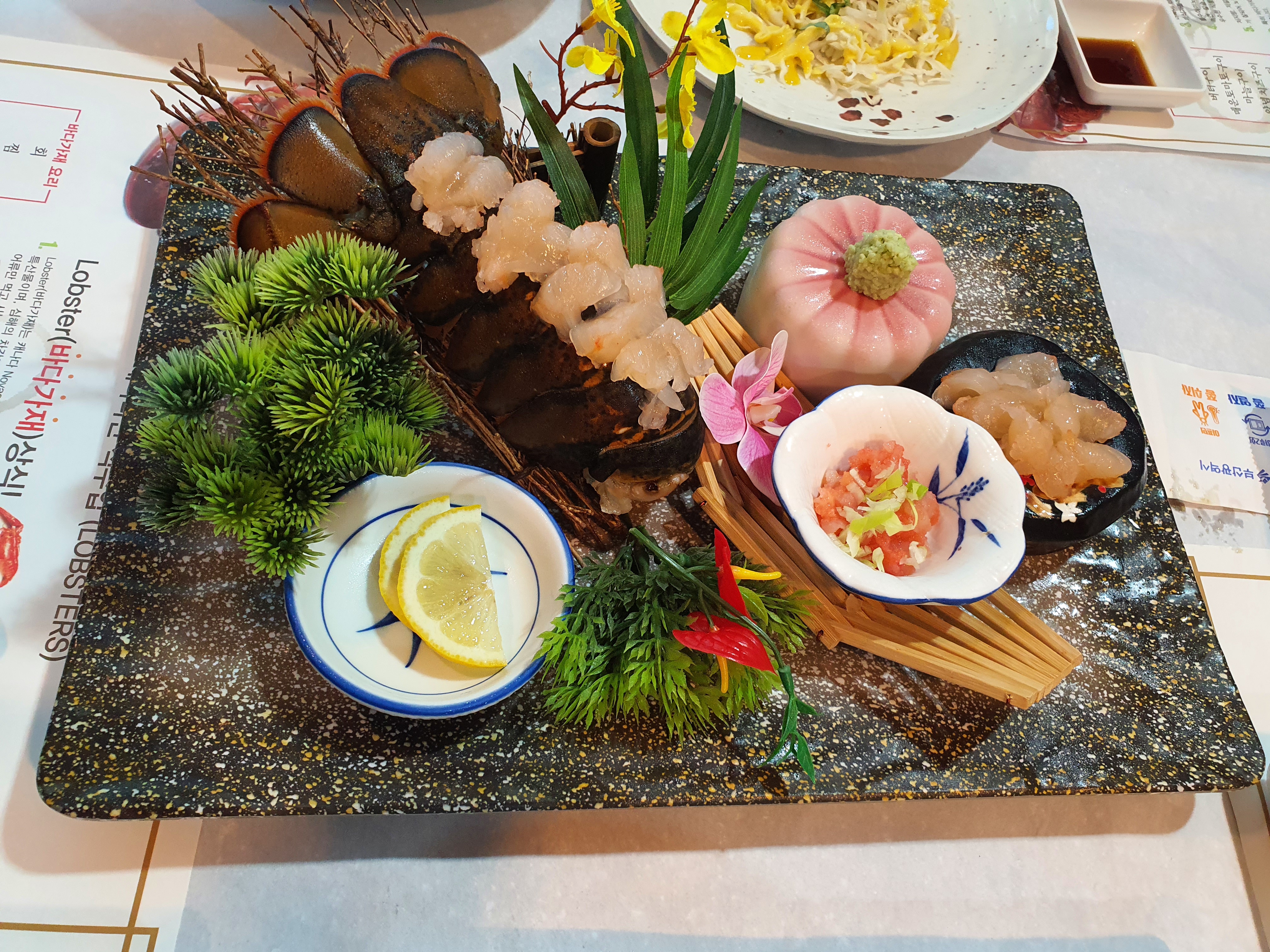 사전 예약을 하면서 코스요리로 주문했기에 바로 순차적으로 음식이 들어옵니다. 이왕 먹는거 제대로 먹어봐야 한다는 생각으로 인당 6만원짜리 랍스터 회/구이코스로 식사를 했네요.