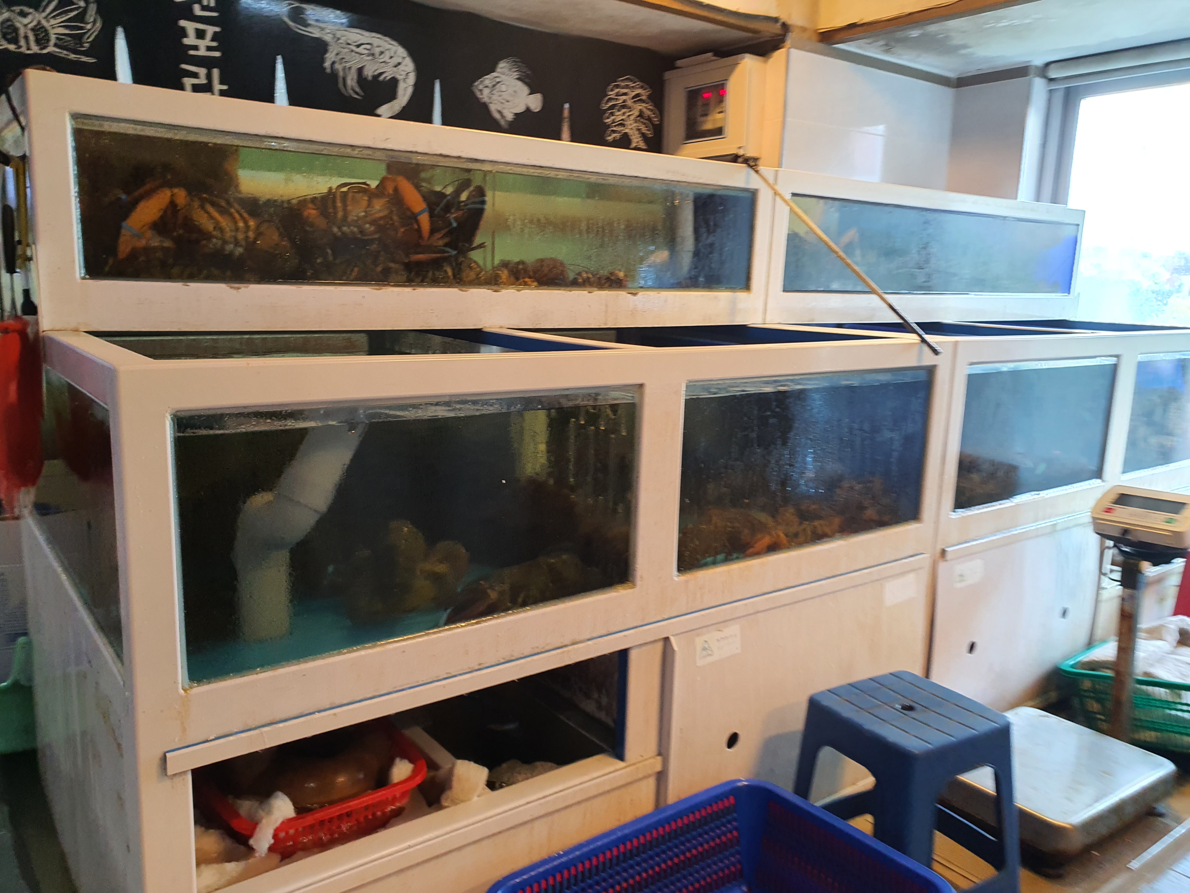 2층 식당으로 들어가면 바닷가재가 들어가 있는 대형 수족관이 보입니댜. 우리는 반대쪽 가족들만 식사를 할 수 있는 룸으로 안내받았습니다. 사전 예약제라고 해서 예약을 하고 왔는데, 자리 여유는 있더군요.