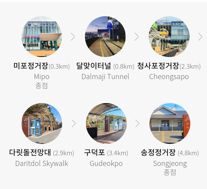 다시 달맞이터널 정거장으로 돌아와 다음편 기차를 타고서 미포정거장으로 돌아왔습니다. 달맞이터널에서 미포정거장은 500여m라 여유와 체력이 있으면 걷는것도 좋을 듯 합니다.