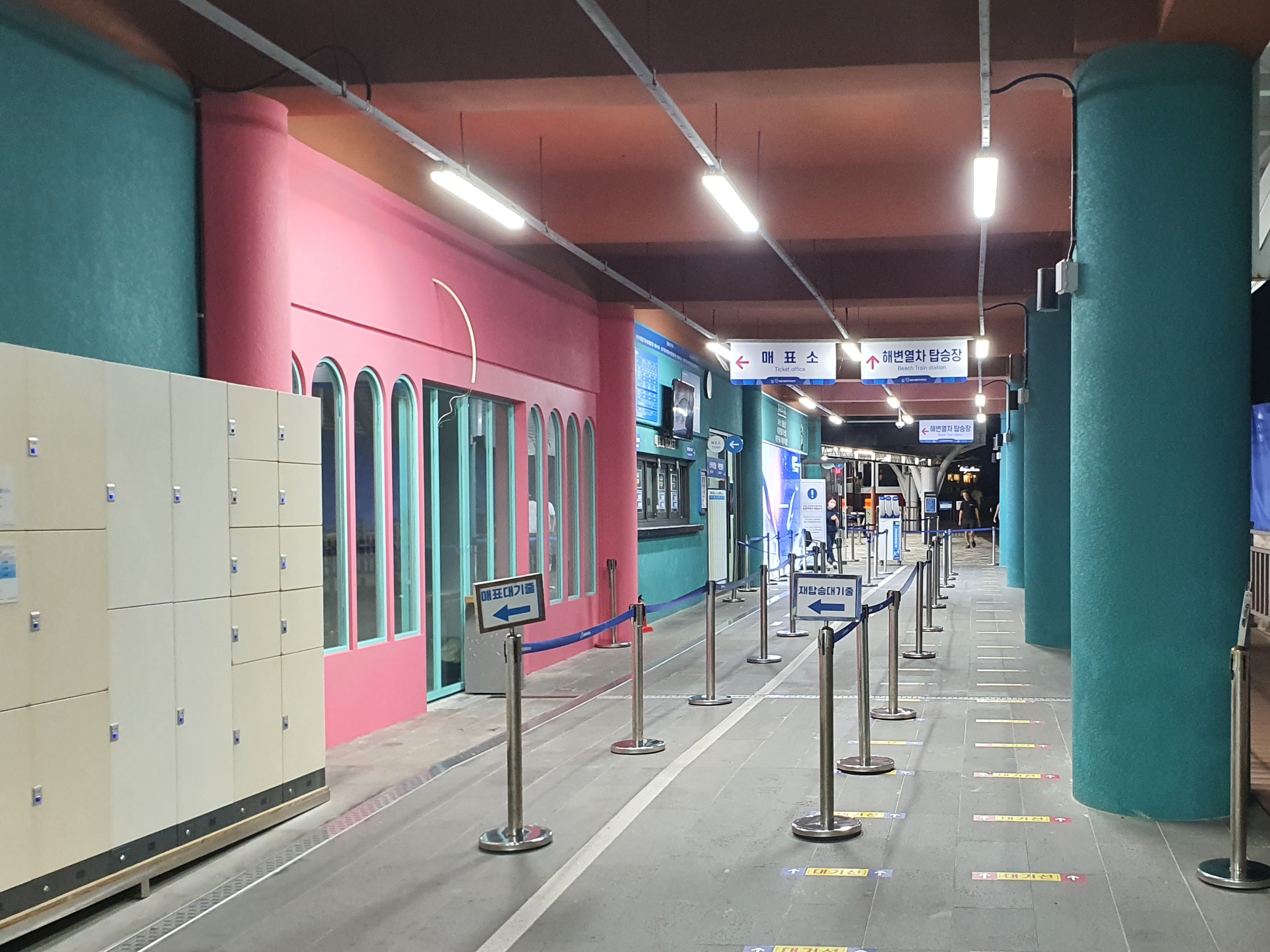 달맞이터널의 전망대를 들어가는 시간이 이미 지나버려 종착역인 송정정거장까지 우선 간다음 다시 미포정거장으로 오면서 몇개의 정거장을 즐기기로 했습니다.