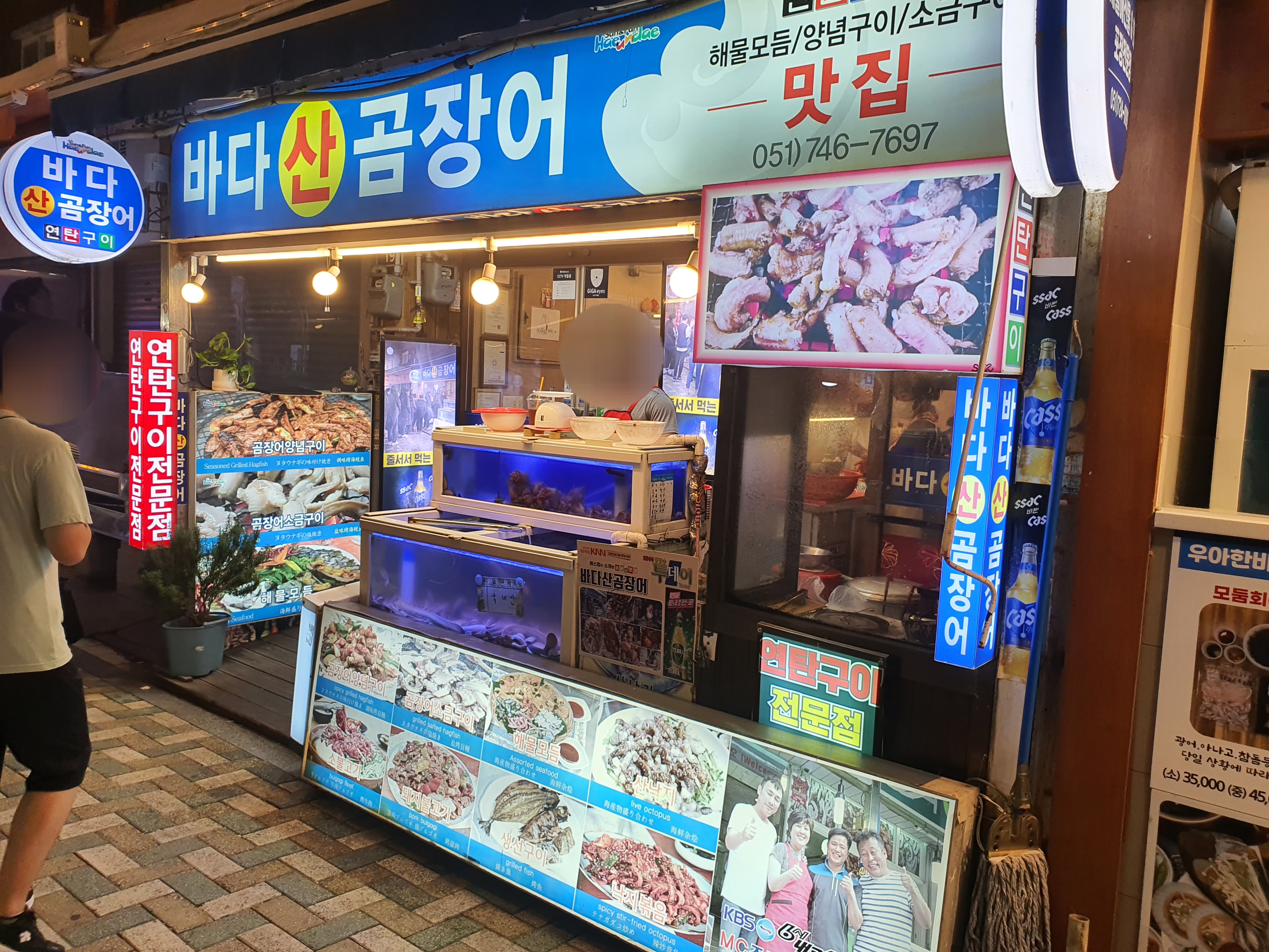 빼곡히 입점한 식당들 중 곰장어전문점이 상당히 많습니다. 그 중에서 리뷰의 평이 좋았던 바다산곰장어 식당에 갔는데, 자리가 없더군요.