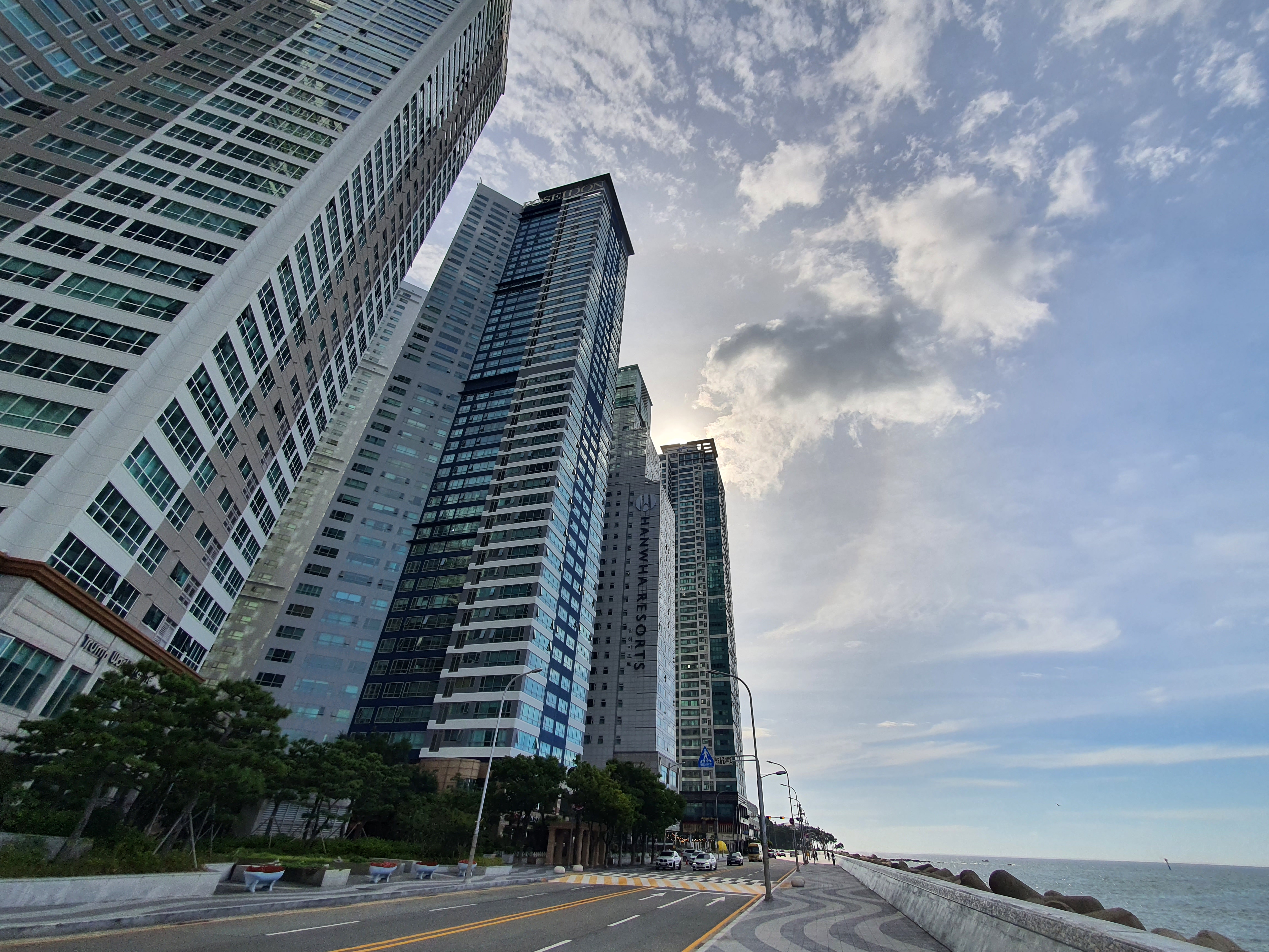 그리고, 식사 후 가볍게 마린시티 해변도로를 산책합니다. 태풍이 올때 파도가 넘어와 도로가 침수되는 곳으로 알고 있는데, 방파제가 낮기는 하더군요. 그 대신 전망은 좋네요.