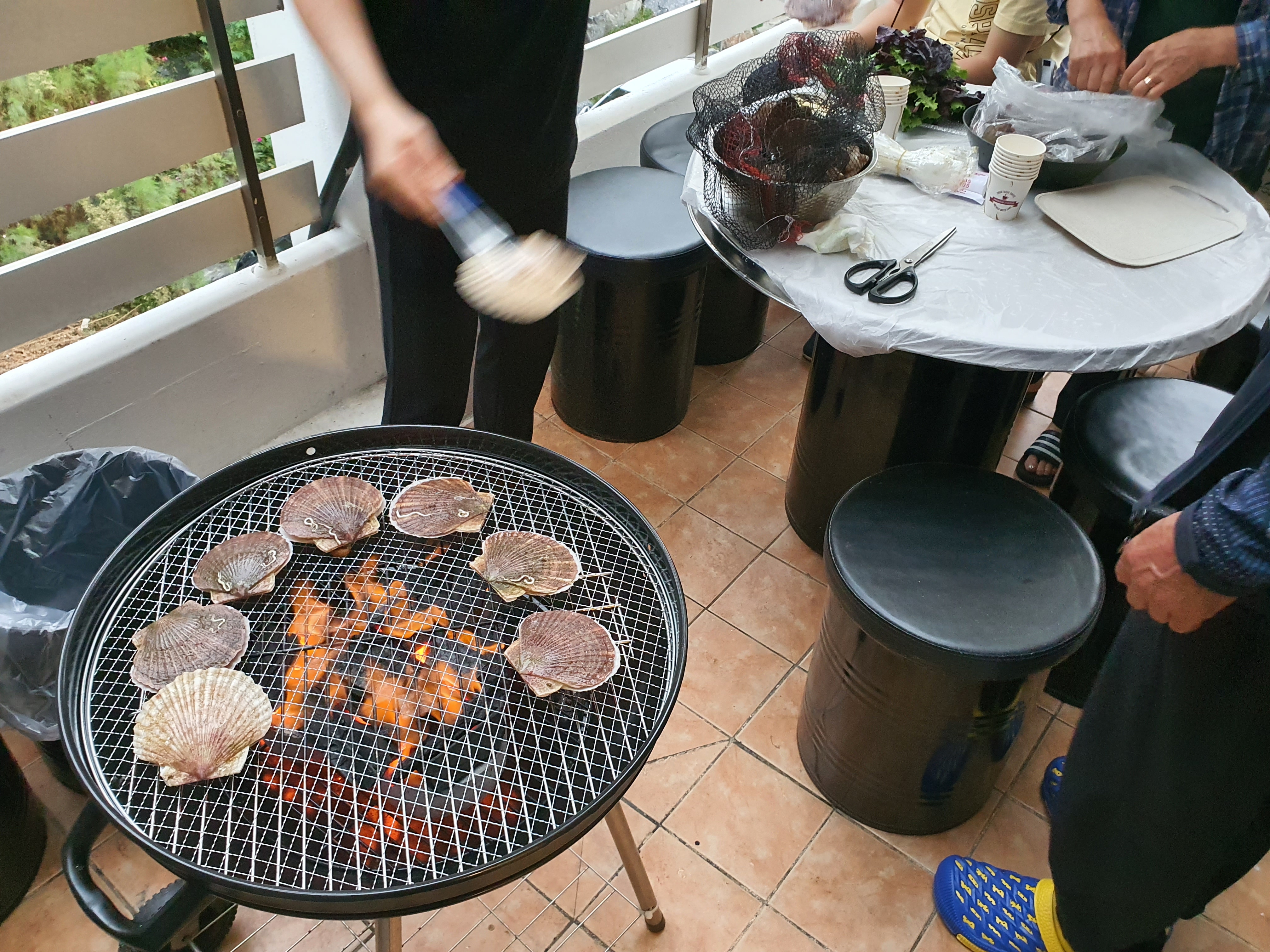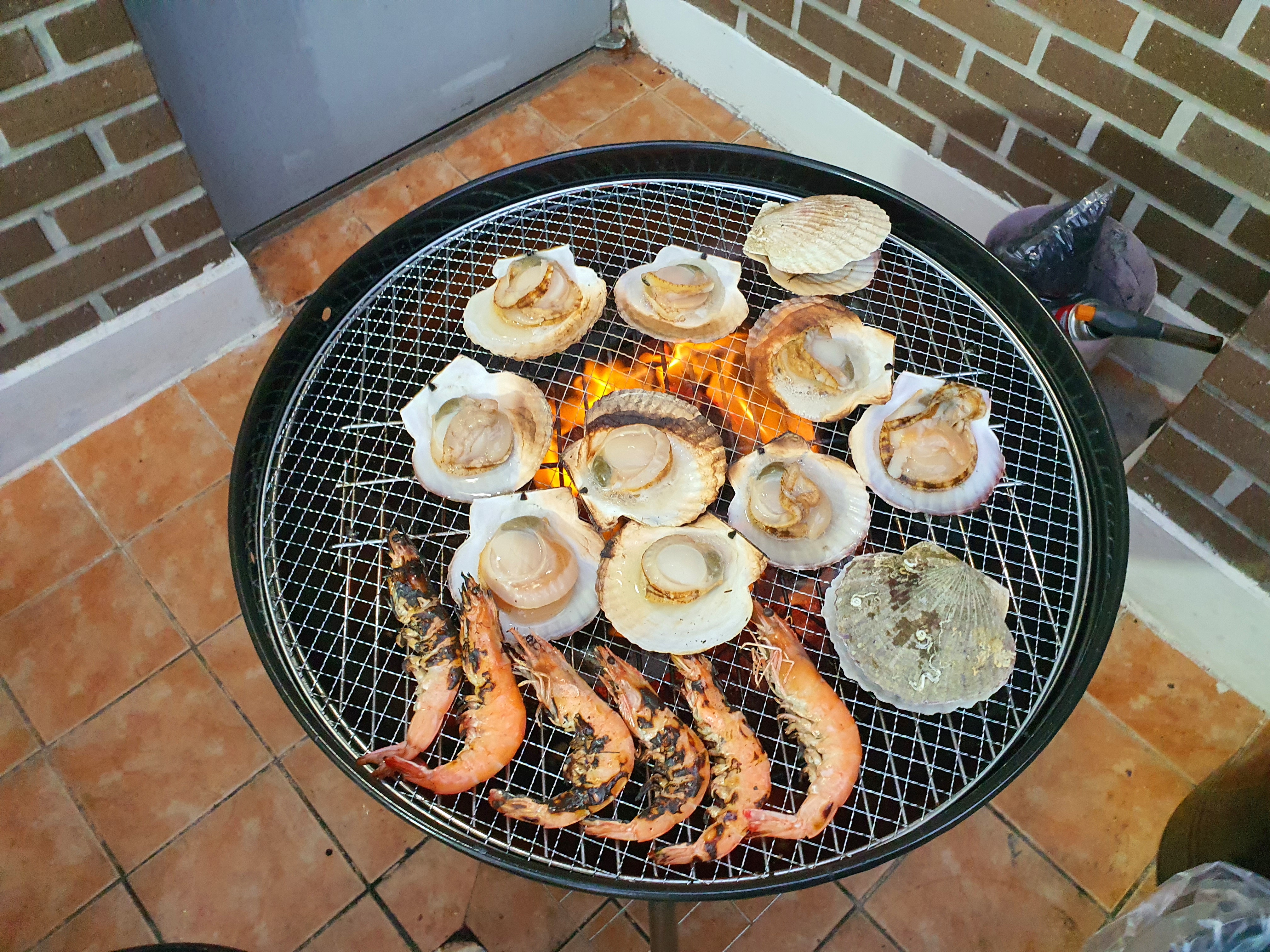 인근에 수산시장에 매우 많았지만, 사장님께서 소개해 주신 수산시장 중에 한 곳을 가서 가리비 2kg, 조개 1kg, 새우 1kg를 구매하고, 개별바베큐장에서 저녁식사를 했네요.