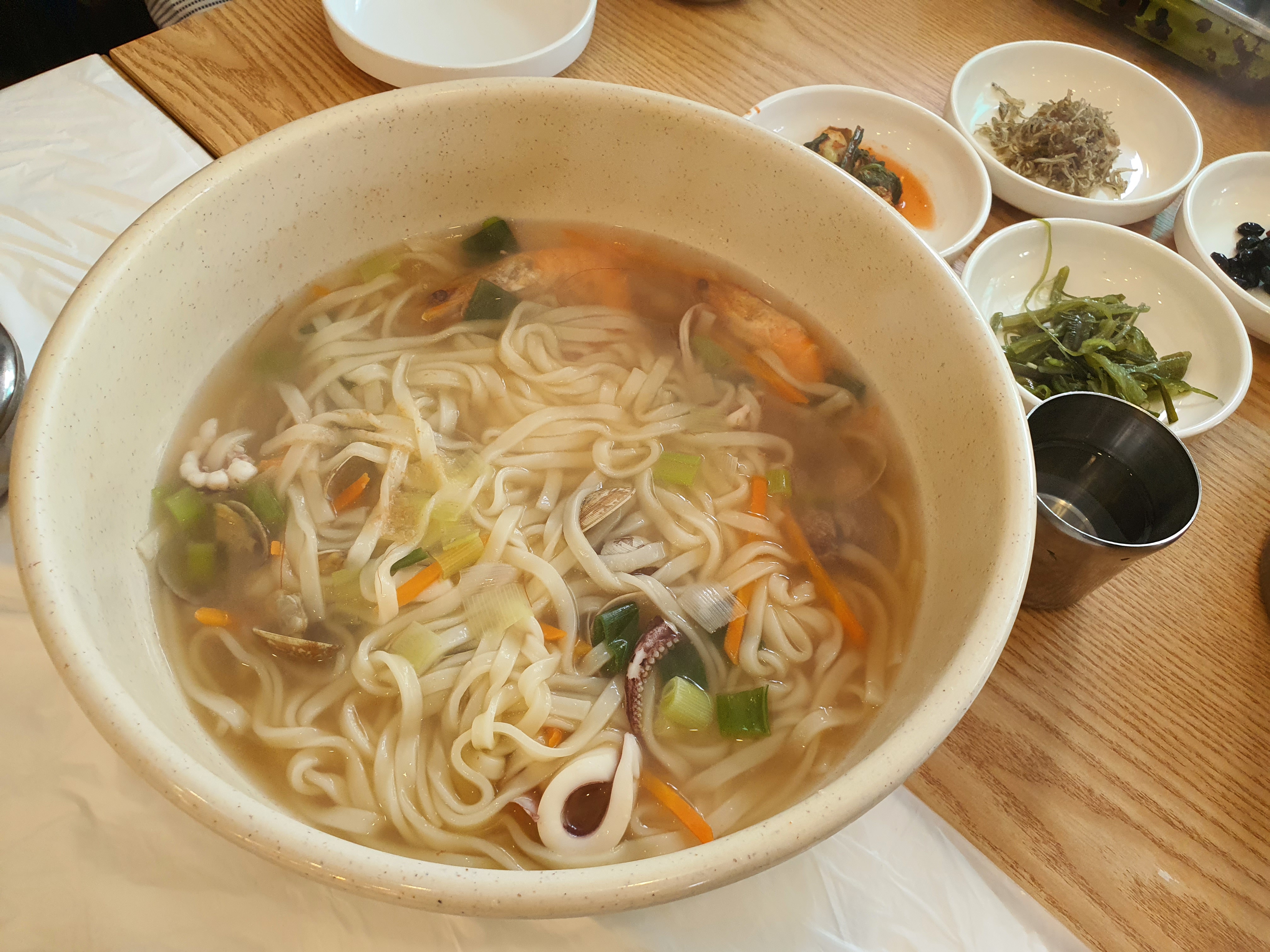 해물뚝배기 3인분에 바지락칼국수 2인분을 주문했습니다. 그리고, 뚝배기에 넣을 라면사리 추가!