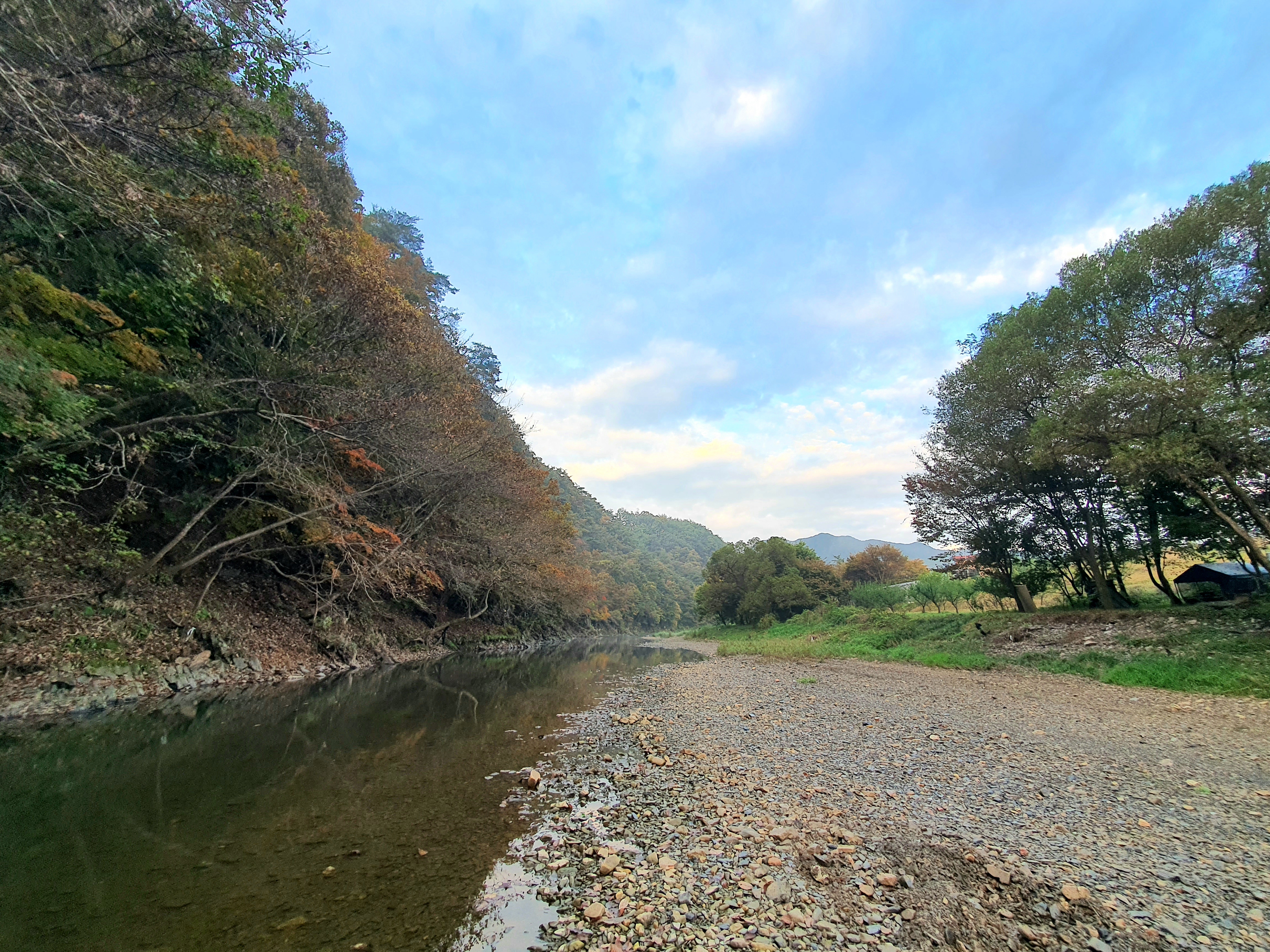 계곡물이 흐르는 강가인데 생각보다 넓어서 놀랐네요. 여름 비가 오면 많은 물이 흐를 듯 하네요. 올해는 비가 많이 내리지 않아서 저수지마다 수위가 낮네요.