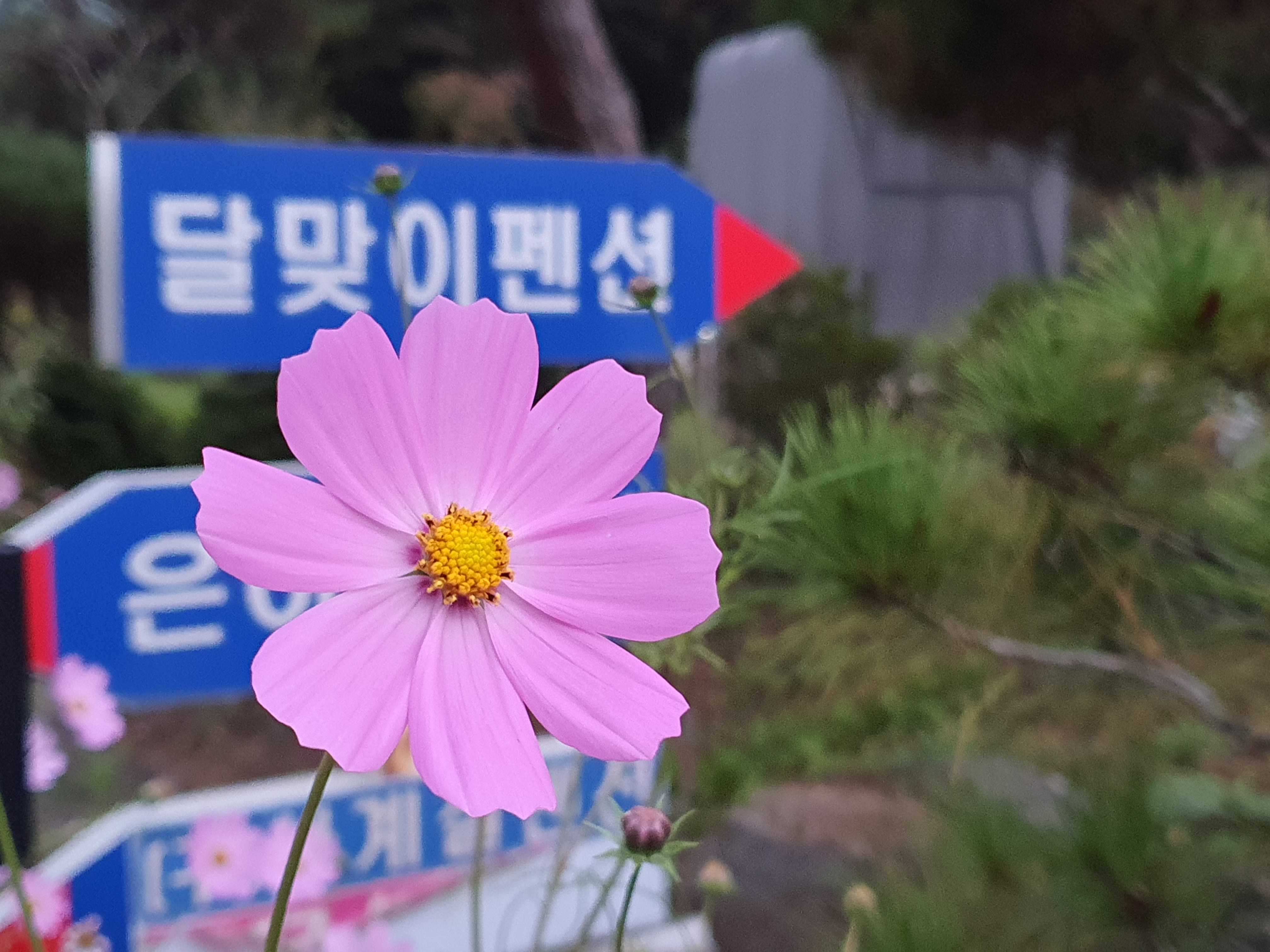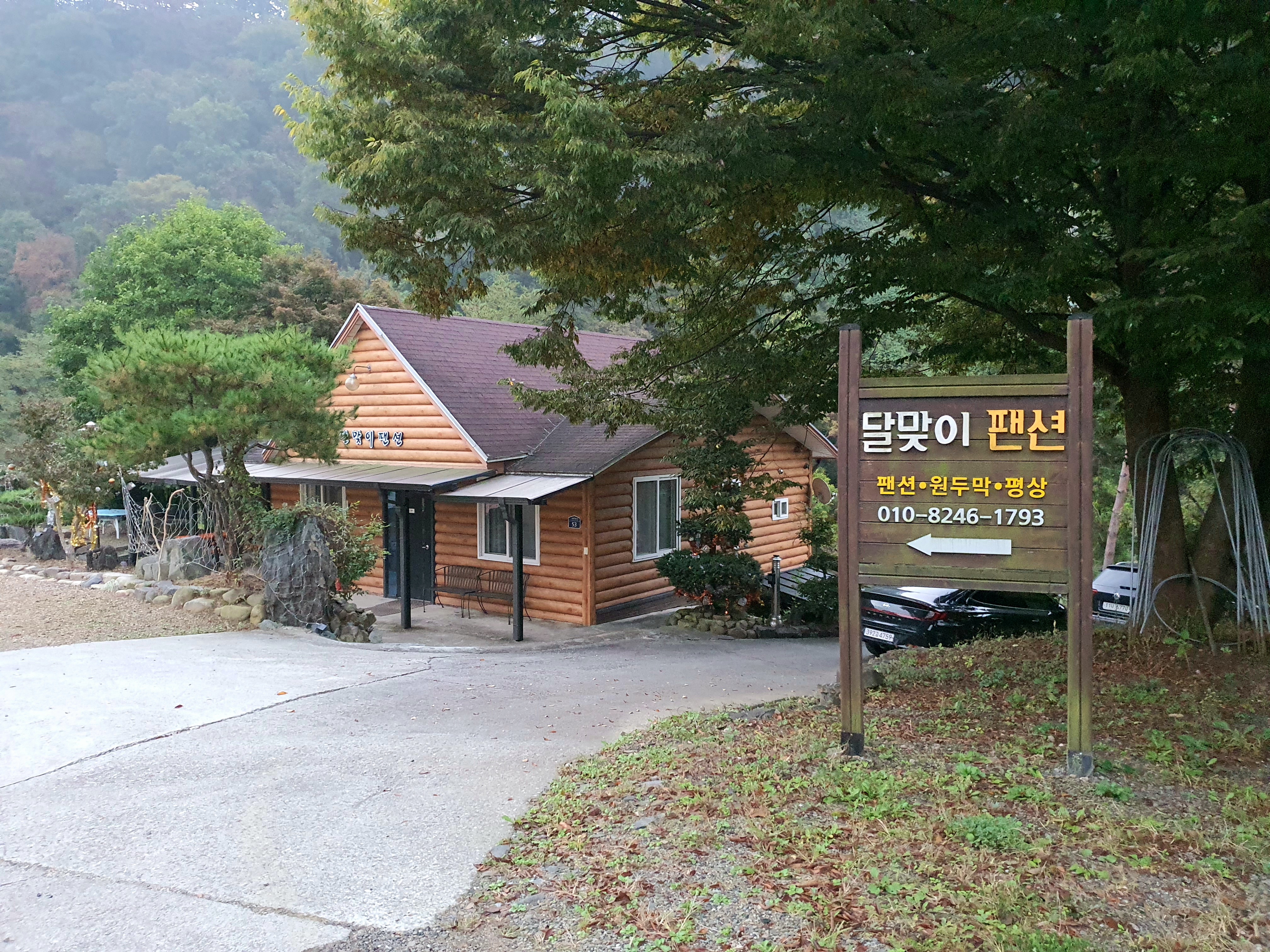도로에서 차량한대가 지나갈 정도의 콘크리트길 끝편에 들어서면 달맞이팬션이 보입니다.