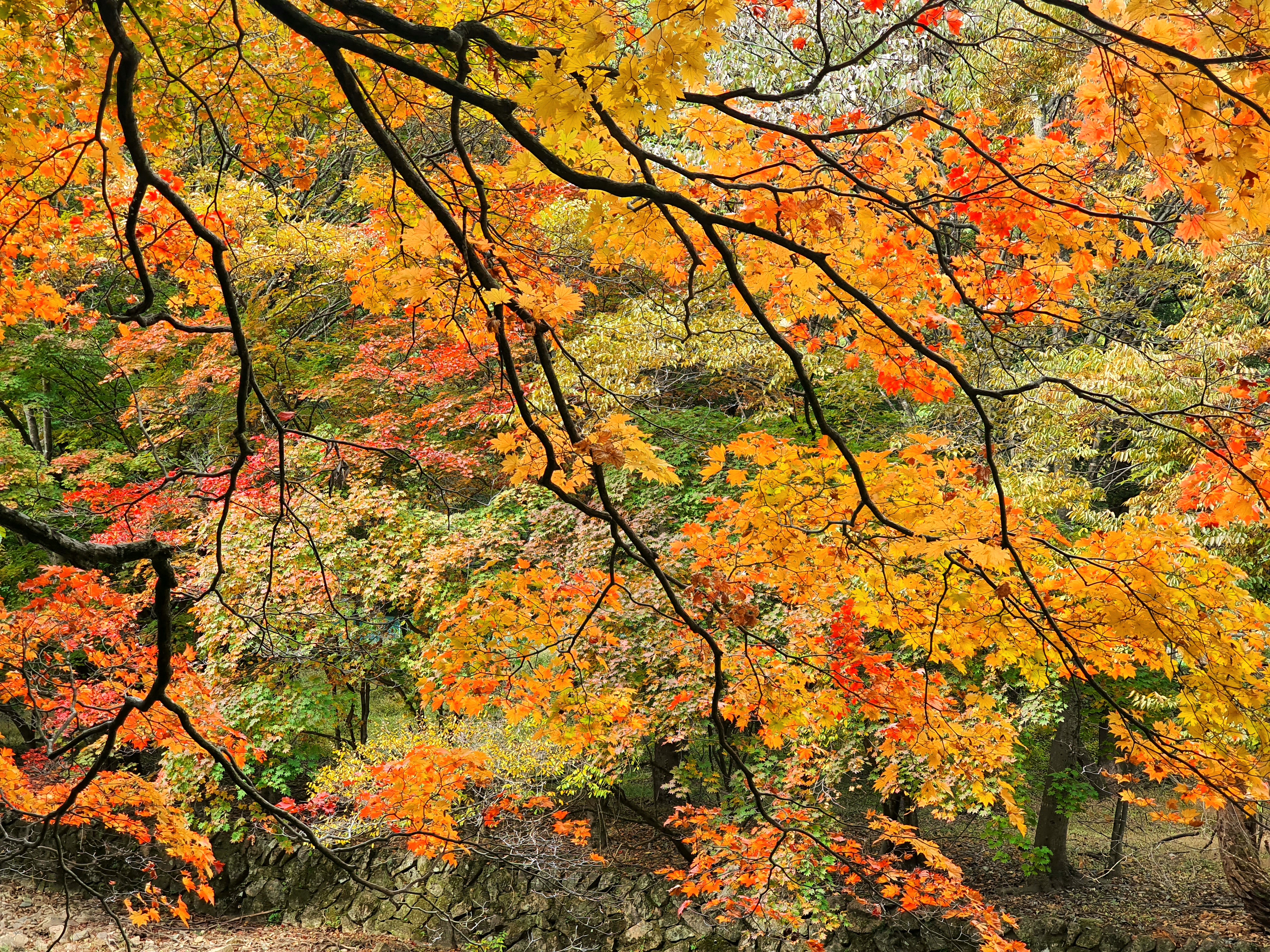 아직은 단풍이 이른 시기였지만, 어느 단풍나무는 알록달록 멋스러운 단풍을 뽐내고 있더군요.