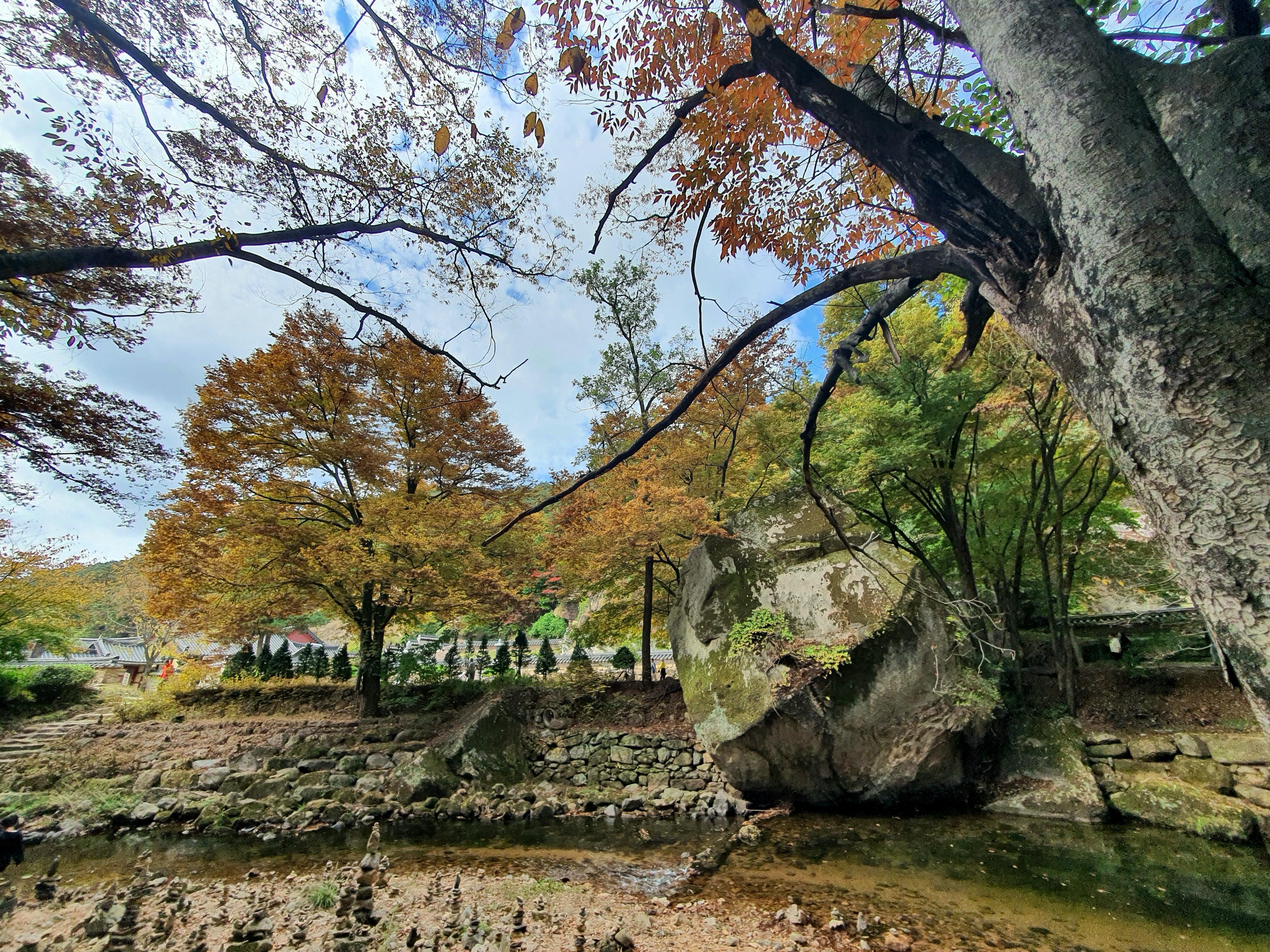나무들은 울긋불긋 단풍이 들기 시작했고, 계곡물은 매우 깨끗해 보입니다. 피래미인지 작은 고기들이 다니고 있더군요.