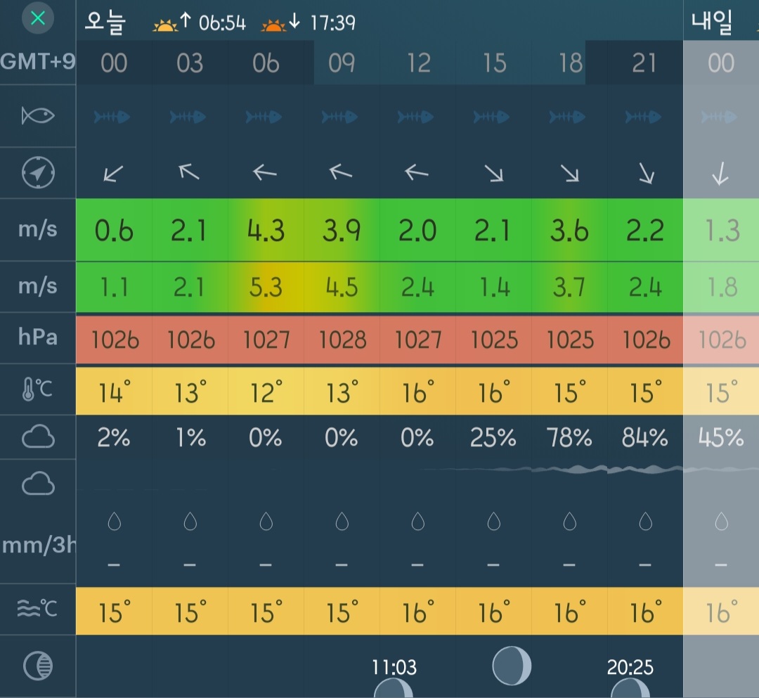 □ 바다상황 : 바람 0~2단, 파도 낮음