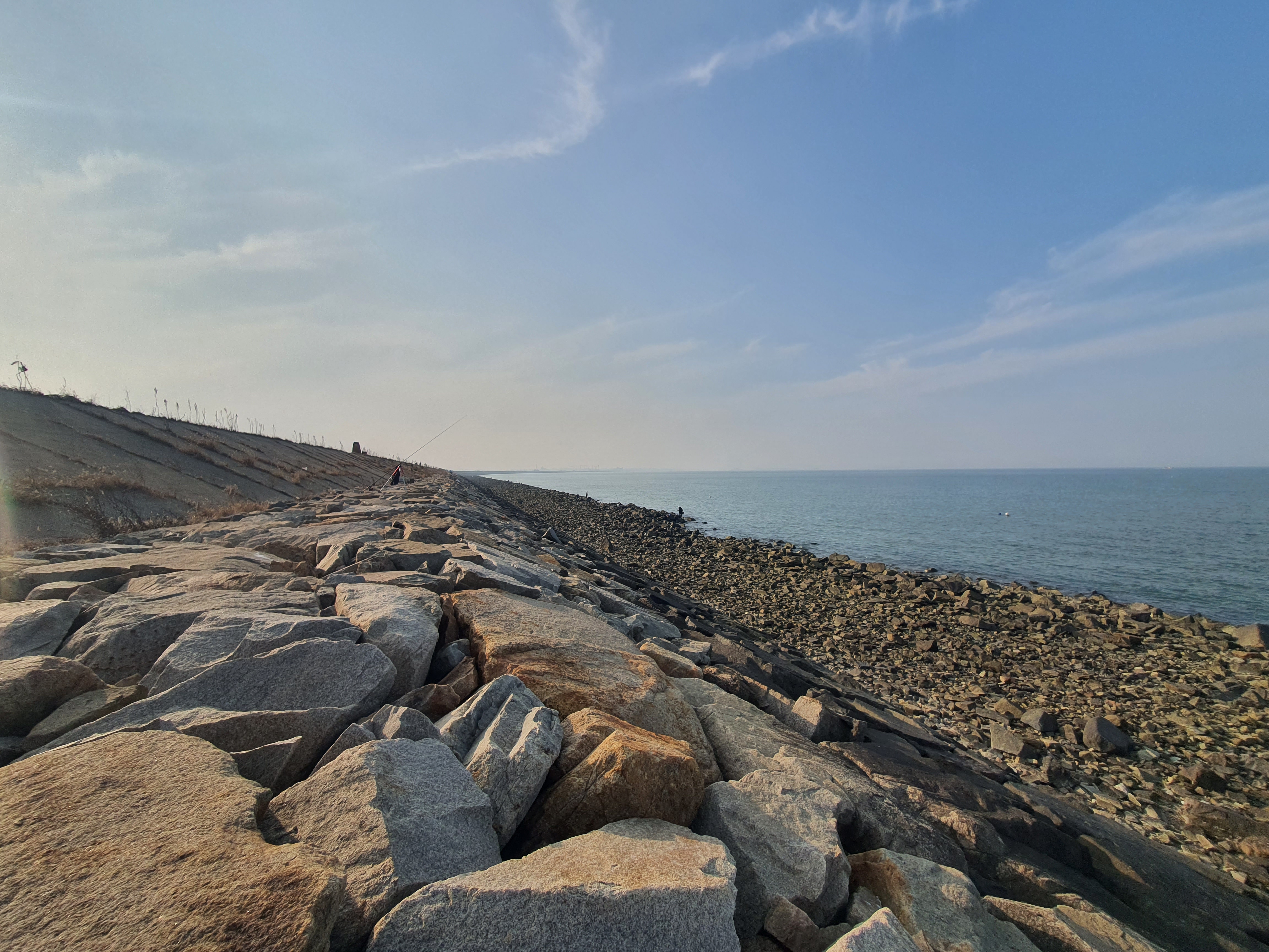 석문방조제에는 방조제 수문이 있는 곳 기준으로 30번부터 500m 단위로 숫자가 적혀 있는데, 24번 근처에 자리를 잡았습니다.