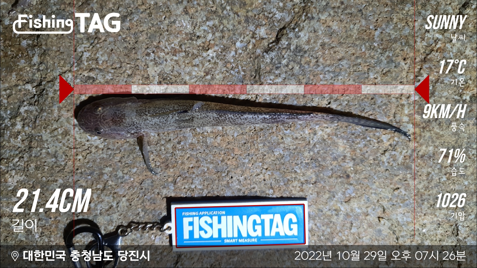 11물이라 물살이 엄청납니다. 우측으로 흐르던 물이 좌측으로 바뀌어 우타를 침에도 좌측으로 라인이 갈 정도네요. 입질과 함께 올렸더니 동생 라인과 꼬였지만 망둥어가 한마리 같이 올라옵니다.