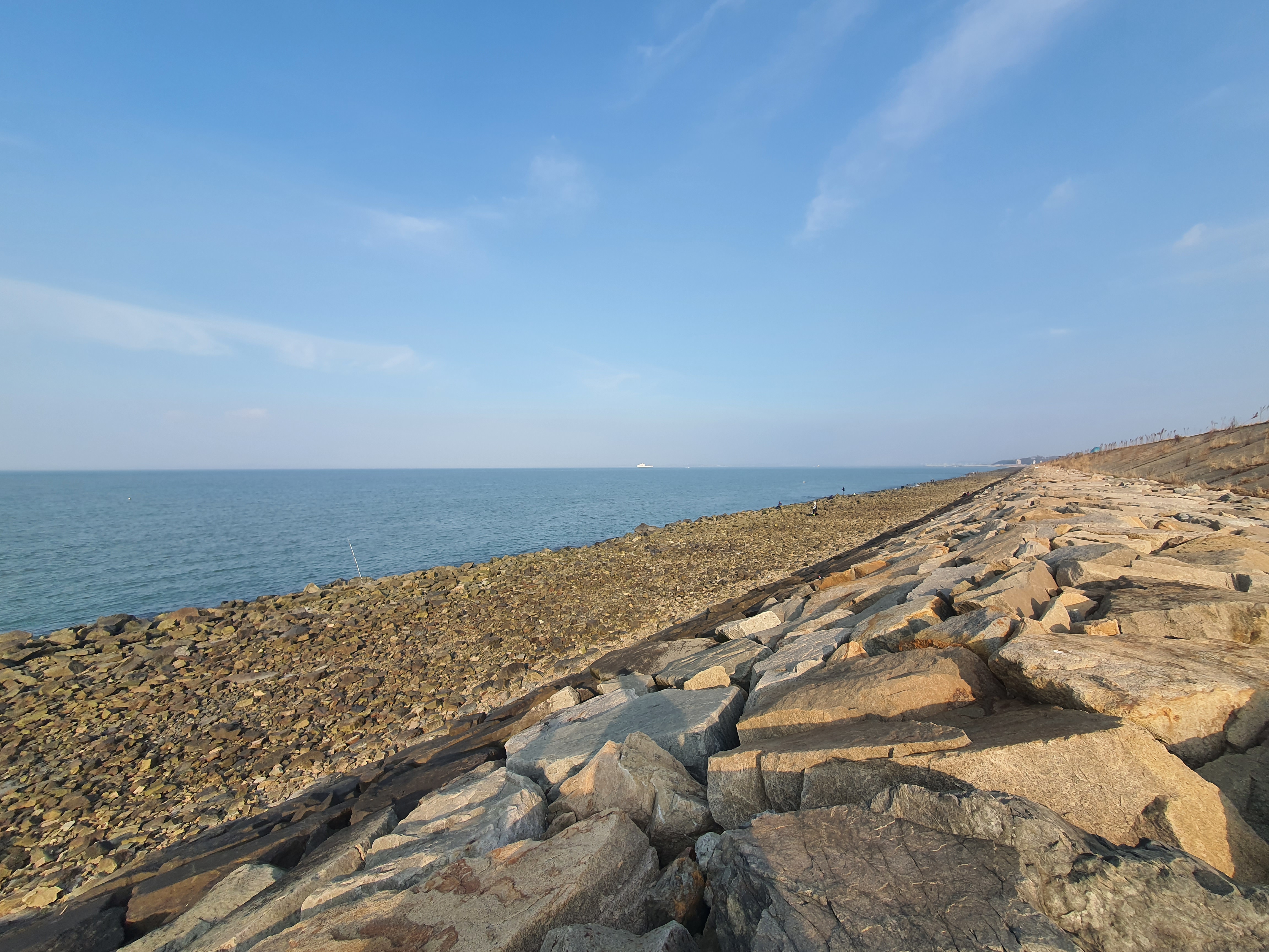 오후 7시경이 만조인데, 간조시간이 막 지난 2시경 도착해서 2단석축 아래는 바닥이 그대로 드러난 상태입니다.