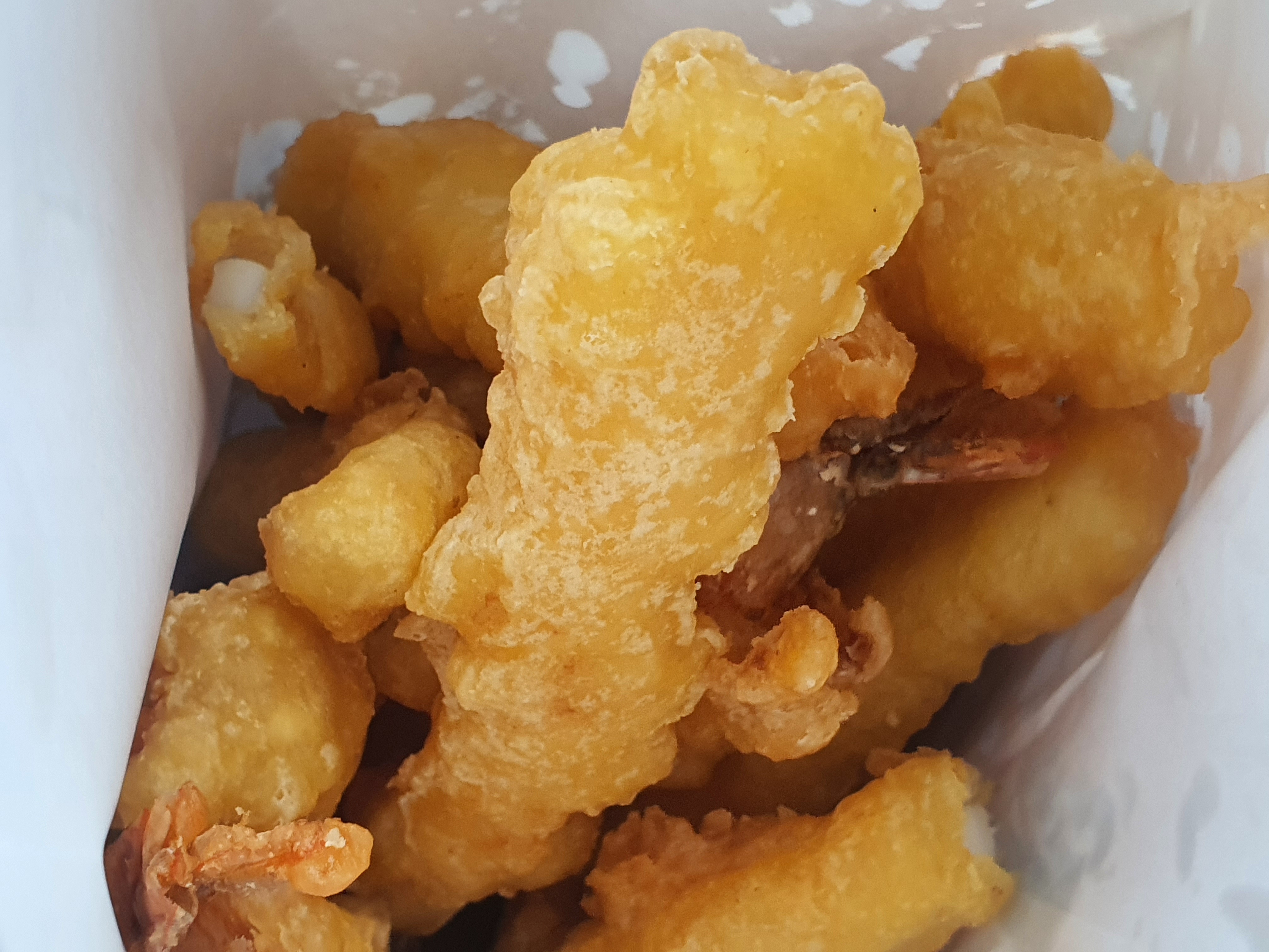 찬찬히 둘러보고 한 푸드트럭에서 새우와 오징어 튀김을 구매했는데요.