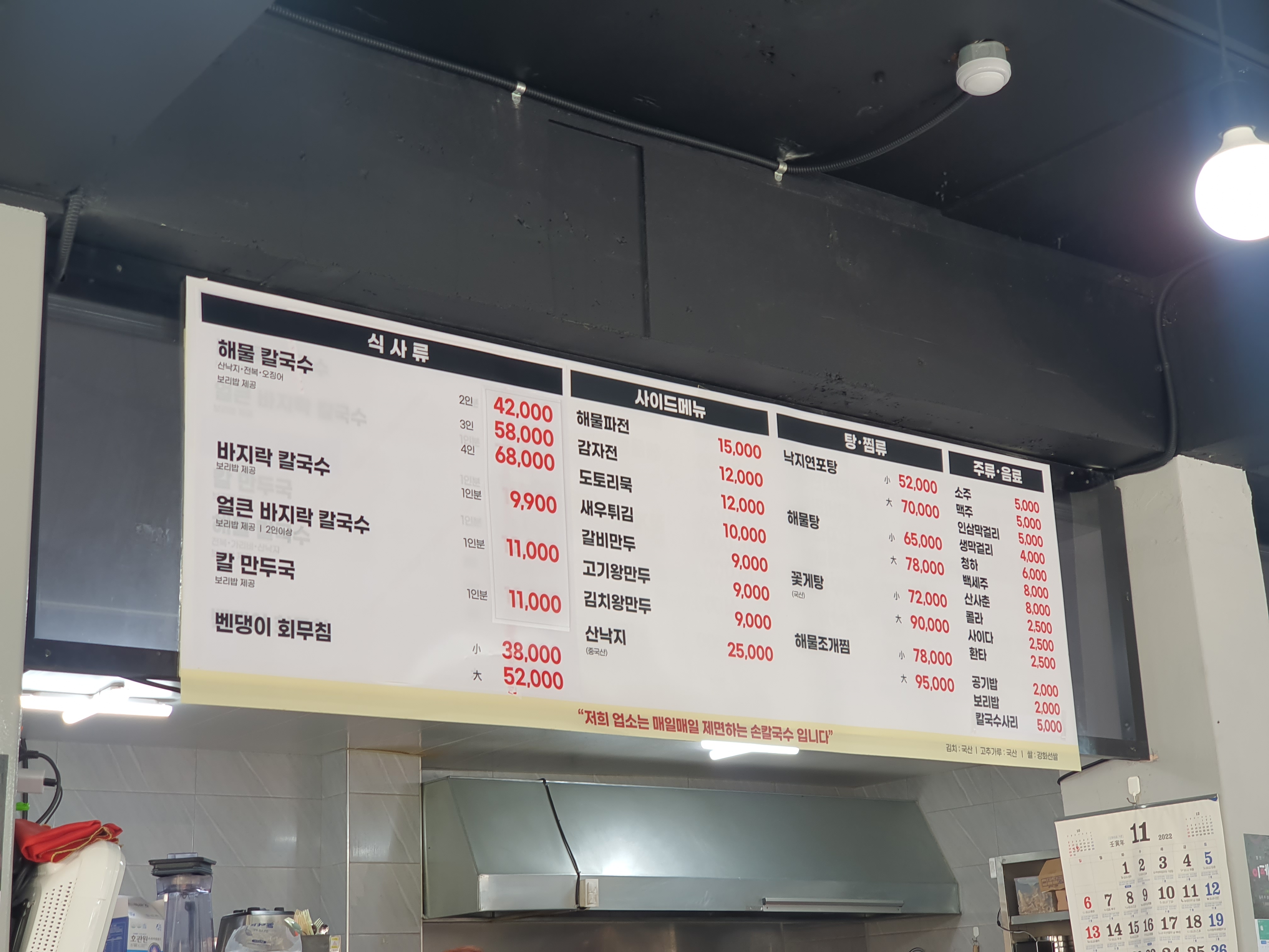 그래도 여행으로 왔기에 해물칼국수 2인분과 해물파전을 주문했어요.