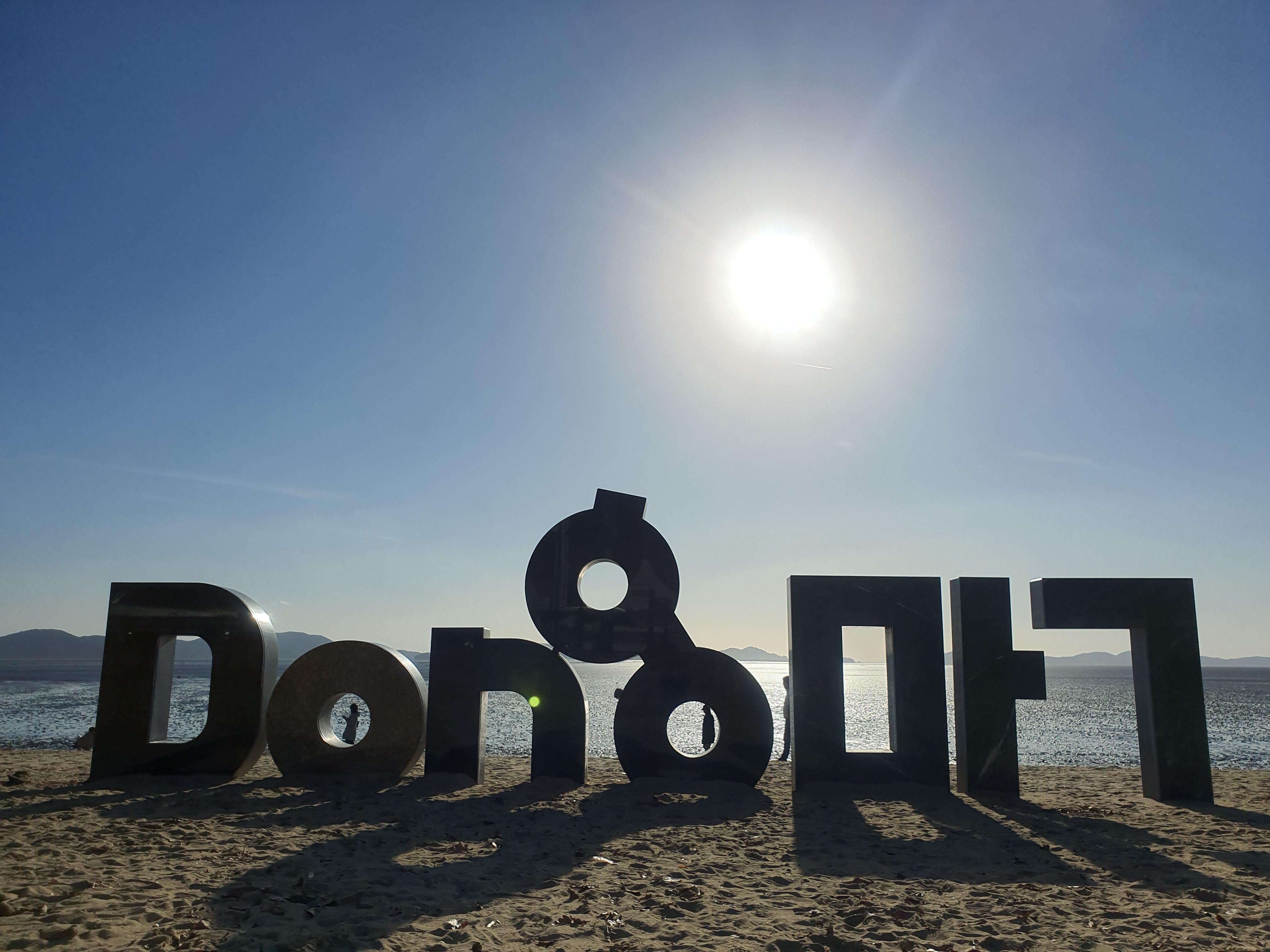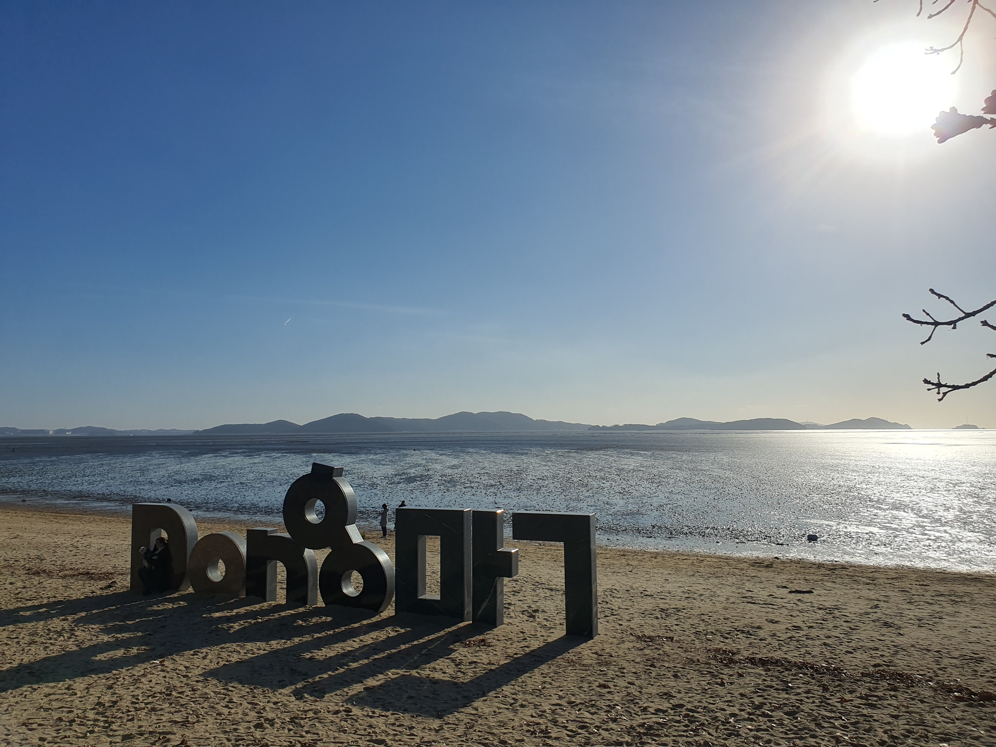 해변에는 동막해변임을 알려주는 "Dong마ㄱ" 조형물이 위치하고 있더군요. 좌측으로 더 가면 별도의 산책길 데스크도 있던데 가 보지는 못했네요.