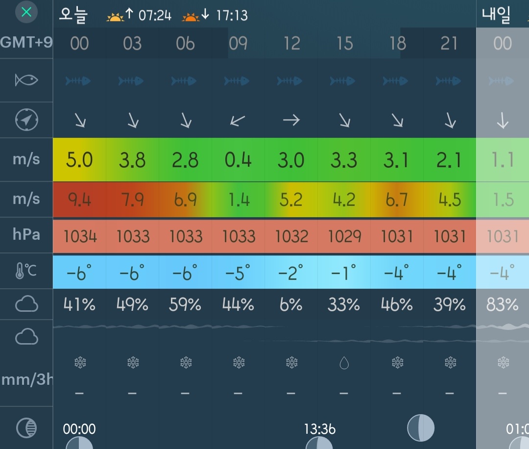 □ 날씨 : 바람 2단 이하, 영하 1도 (낮기온), 구름조금