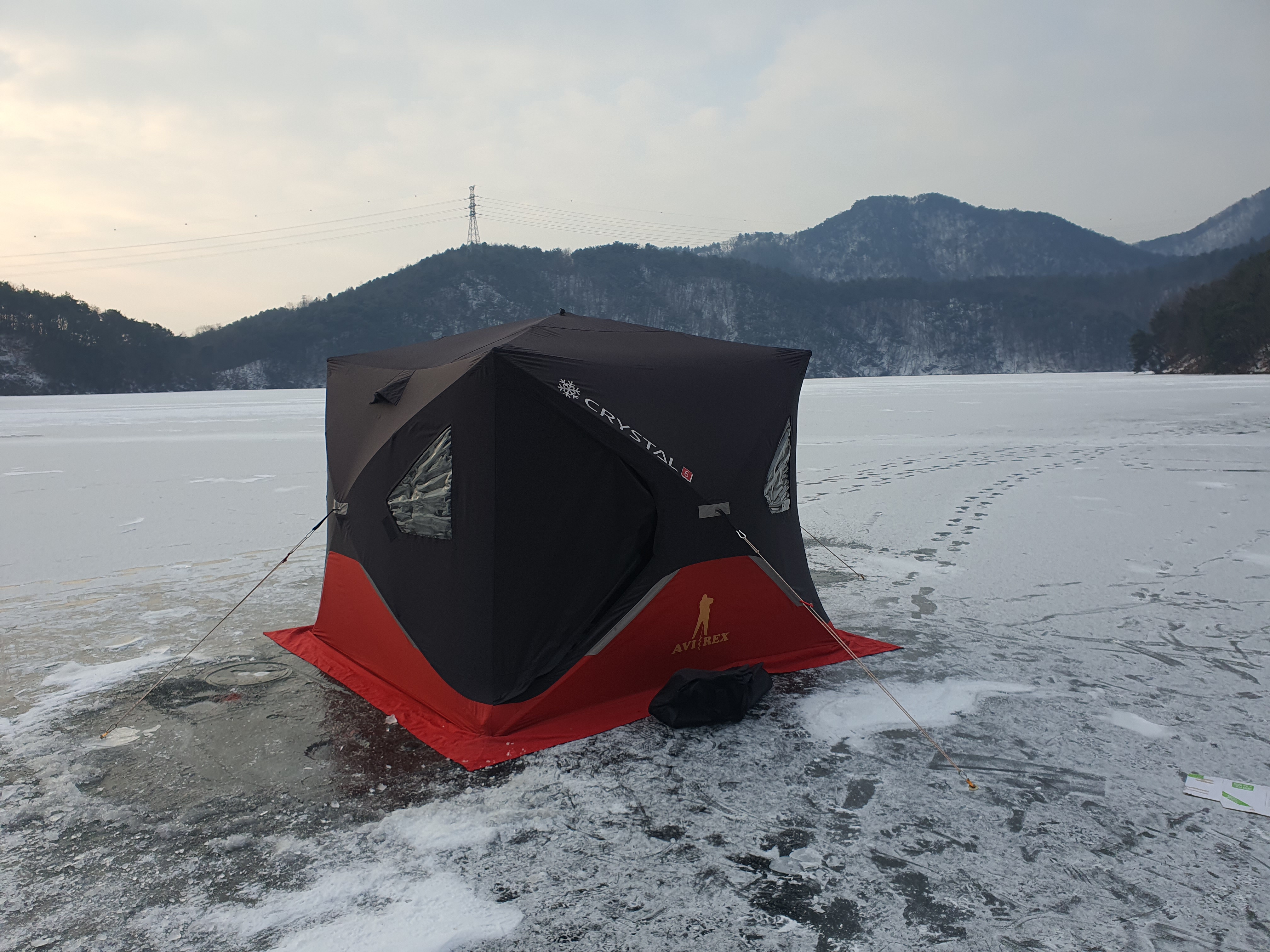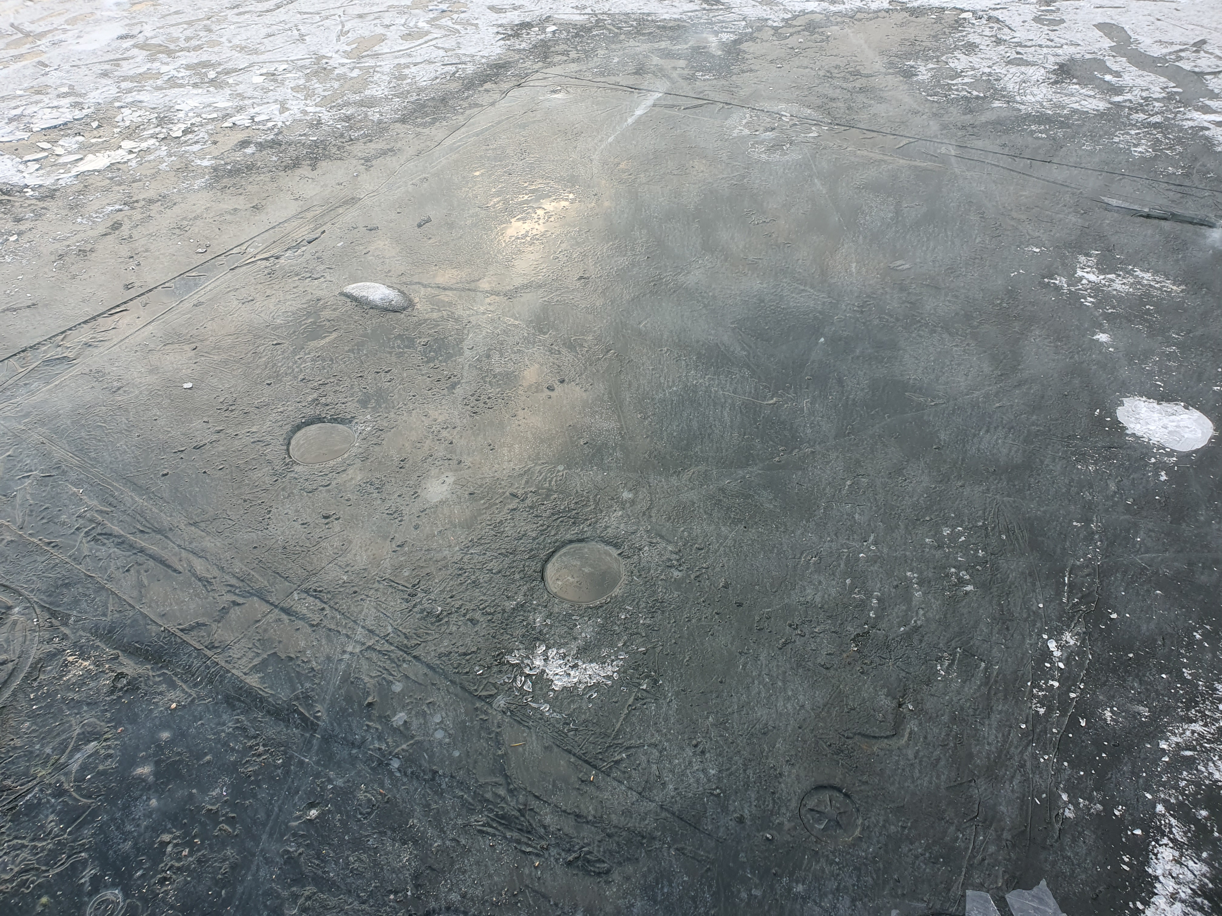 빙판 두께는 대략 15cm정도로 빙박까지도 문제가 없어 보이더군요. 그런데 얼음 갈라지는 소리가 너무 자주 들려서 쫄깃쫄깃 하더군요.