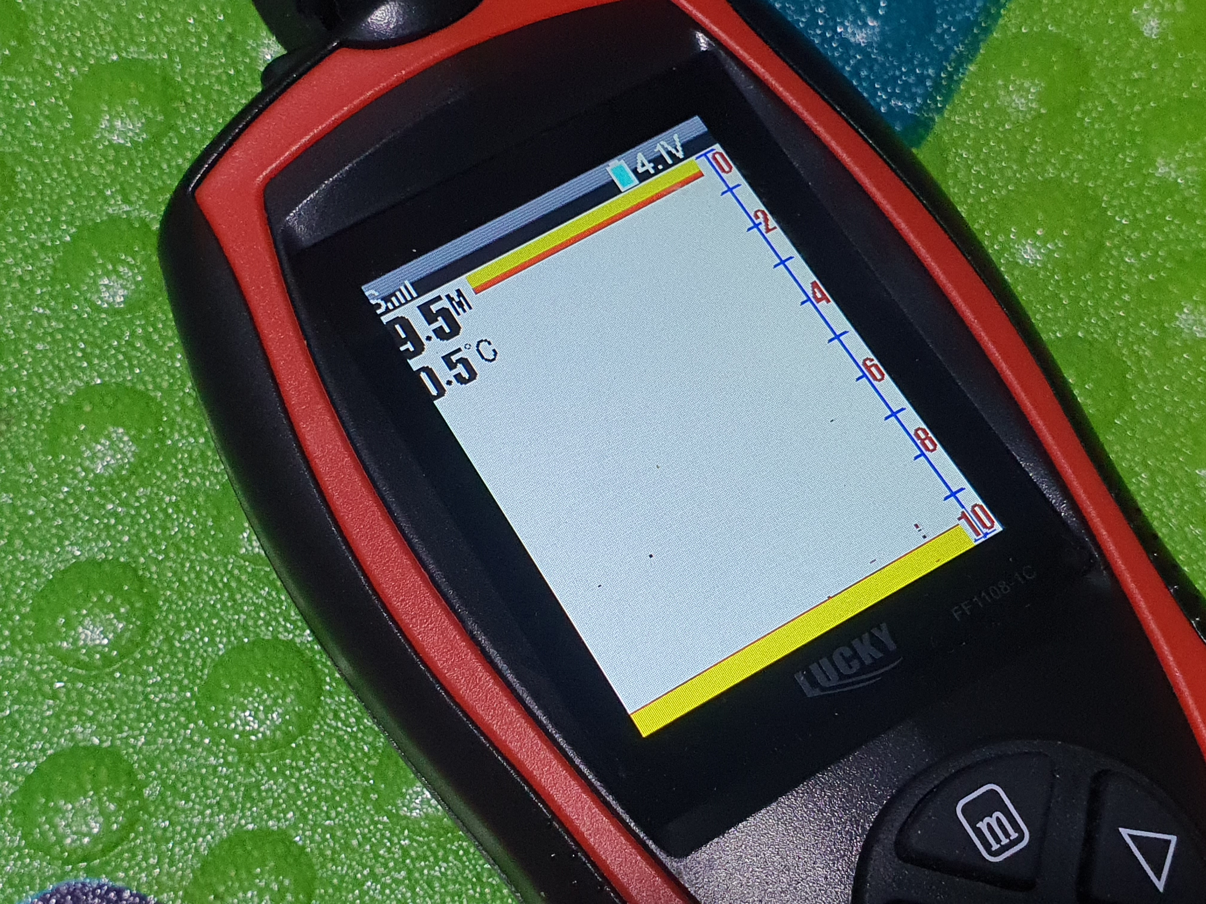 수심은 약 10m 정도인데, 고기가 없네요. 간혹 어군이 잡히기는 하지만 입질이 그다지 활발하지도 않습니다.