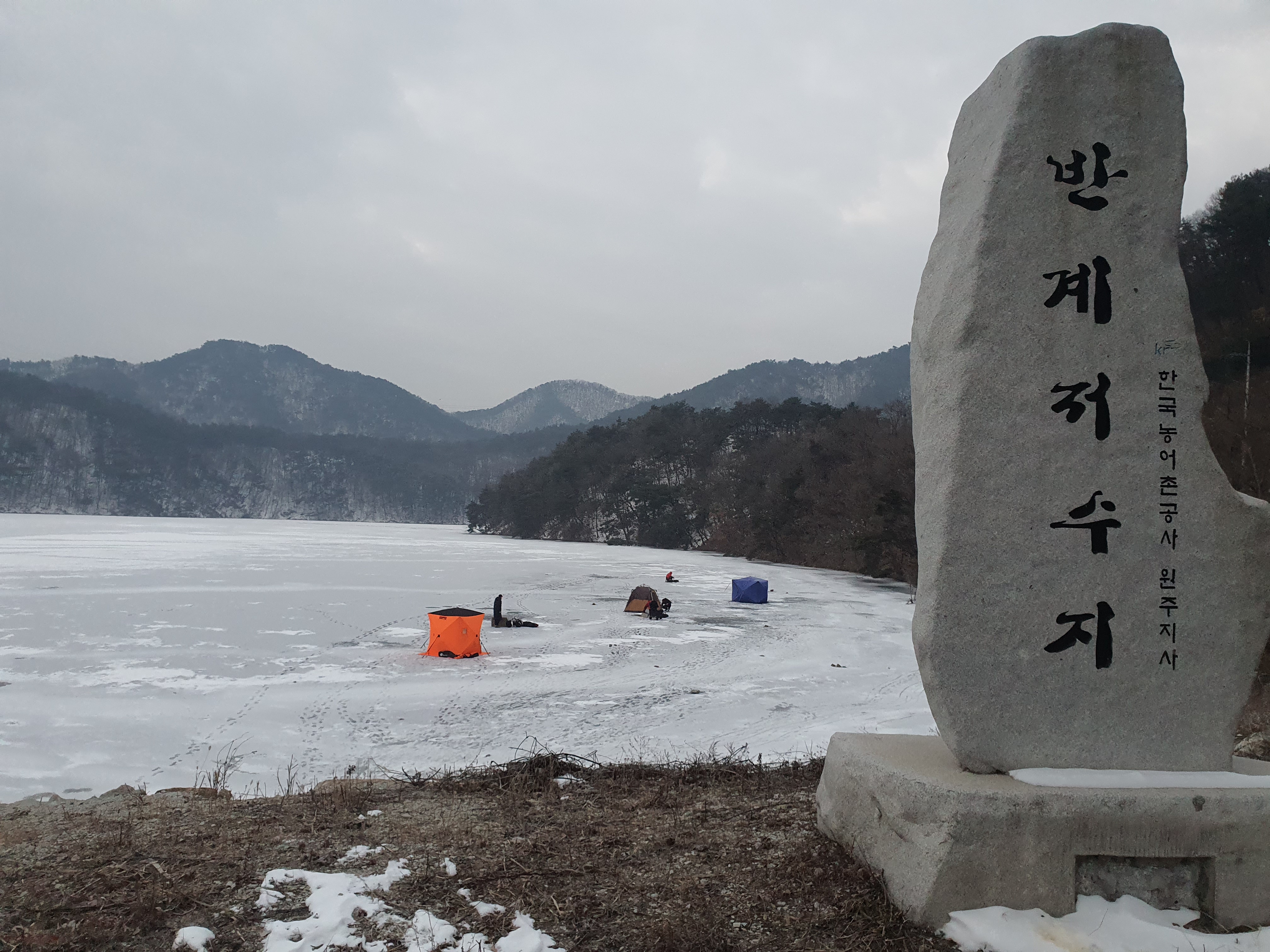 경기도에서 멀지 않는 곳에 빙판위 빙어낚시가 가능한 빙어낚시 포인트를 알아보니 강원도 원주 문막에 위치한 반계저수지가 있더군요. 이번시즌에는 중부 지방 위쪽의 빙어 소식이 별로이기도 하고 반계지 또한 조과는 미더웠지만, 모처럼 아이와 함께 텐트 피칭을 위해서 출조를 해 봤습니다.