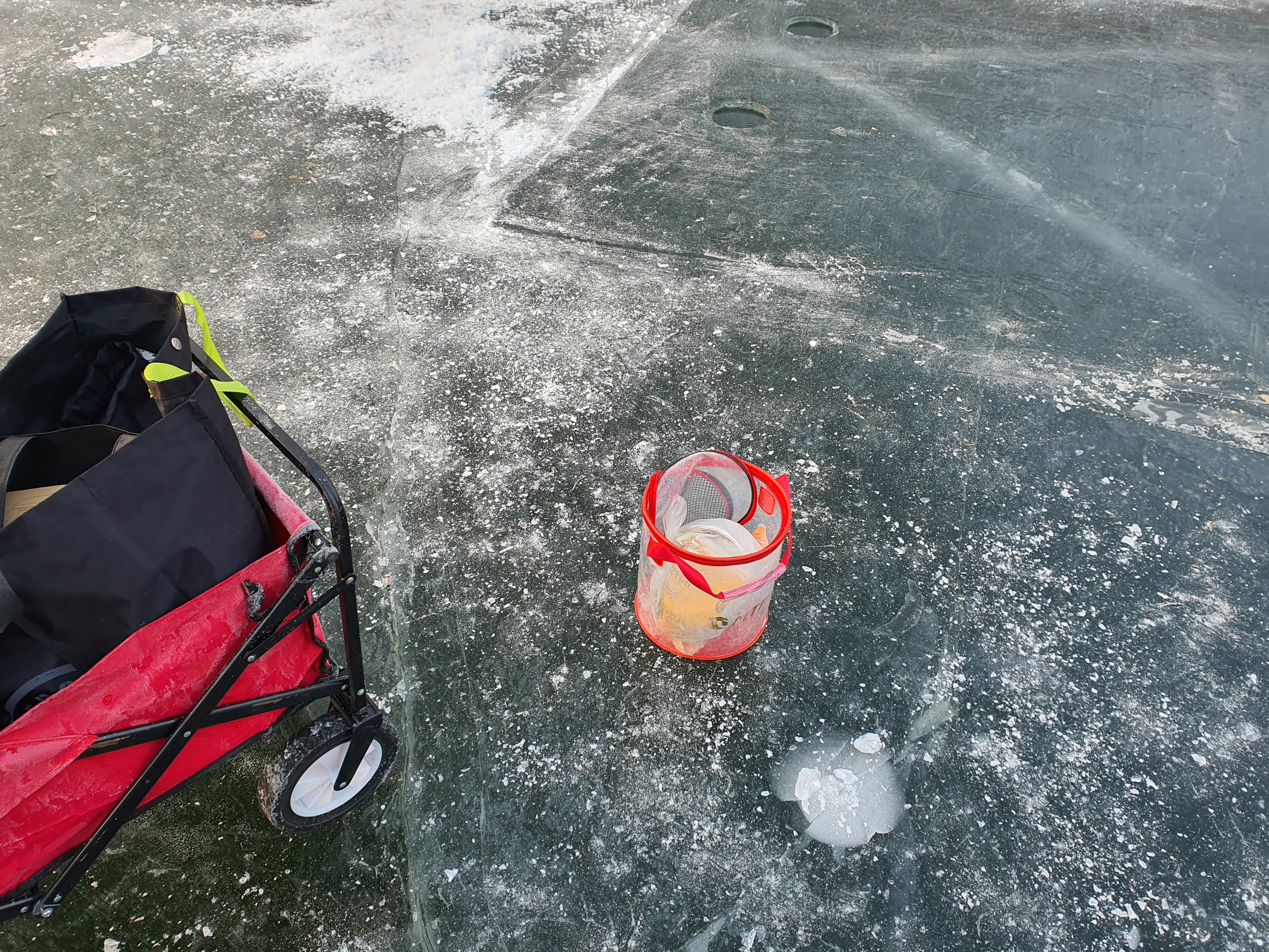 이번 빙박에서는 찌빙어낚시도 도전해 봤습니다. 방법이 기억이 나지 않아 최대한 비슷하게 꾸며서 해 봤는데, 생각외로 입질 파악도 좋았고 전동릴보다 조과가 좋은 느낌이더군요. 앞으로도 자주 사용할 듯 하네요.