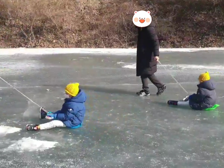 눈썰매도 가져와서 열심히 끌어줬네요..ㅡ,ㅡ