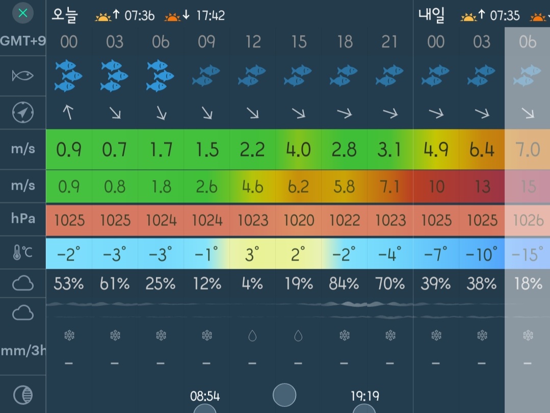 □ 날씨 : 2단이하 바람, 낮기온 3도, 맑음