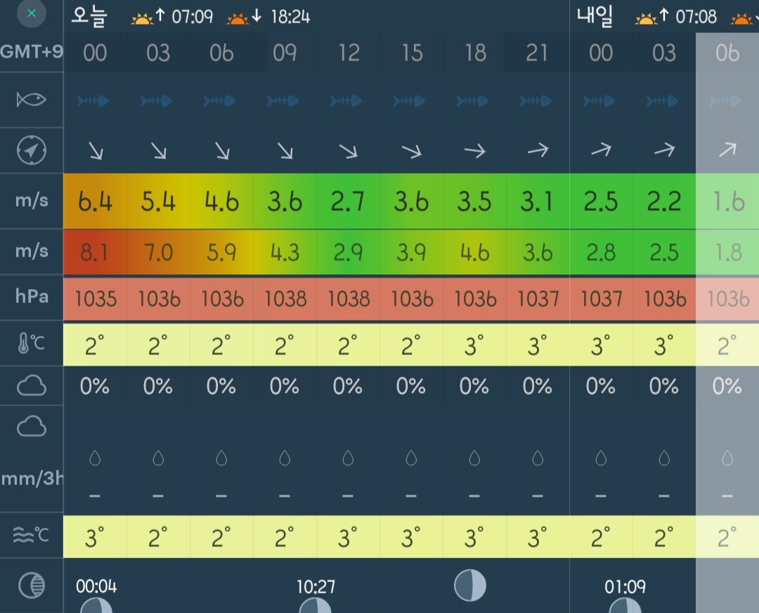 물때는 13물에서 점점 약해지는 물때라 그리 좋은 물때는 아니었고, 바람 예보와는 달리 정오이후부터는 4단 수준의 차가운 바람이 불더군요.
