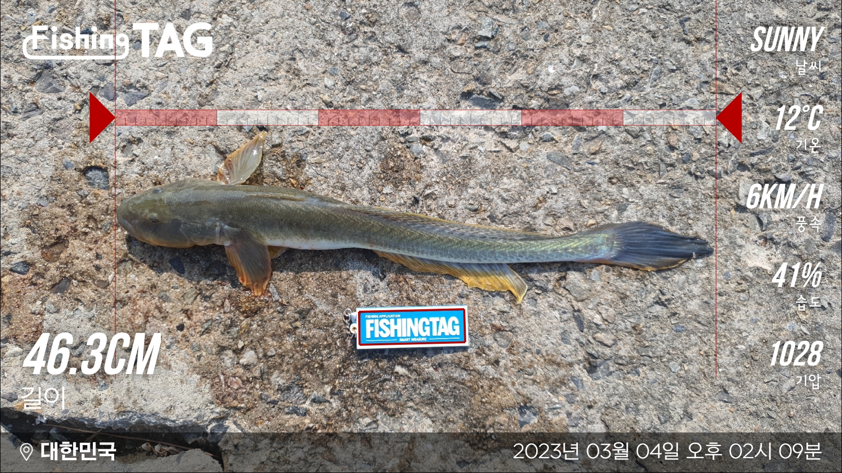 오늘의 최대어 46.4cm 망둥어를 체셈도리가 올리네요.