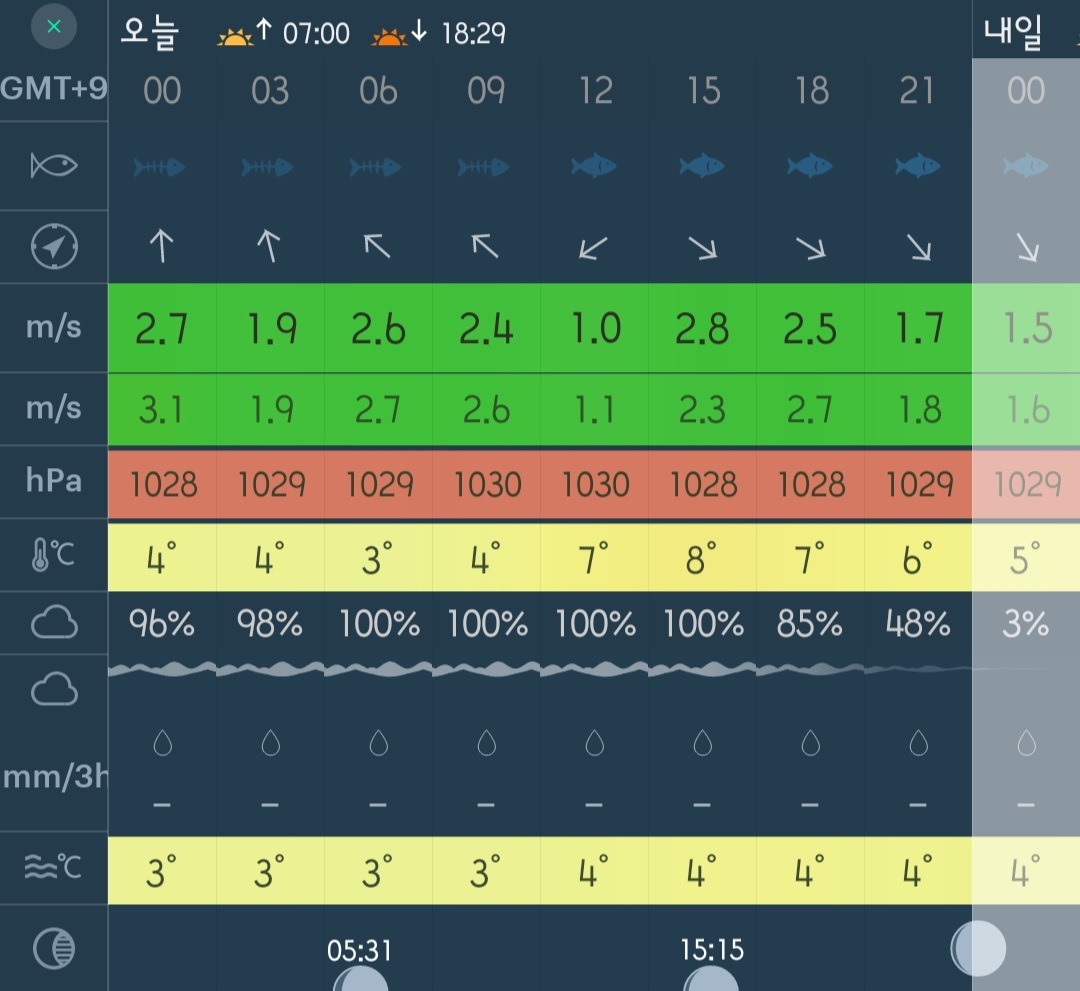 □ 바다상황 : 바람 3단이하, 파도 없음
