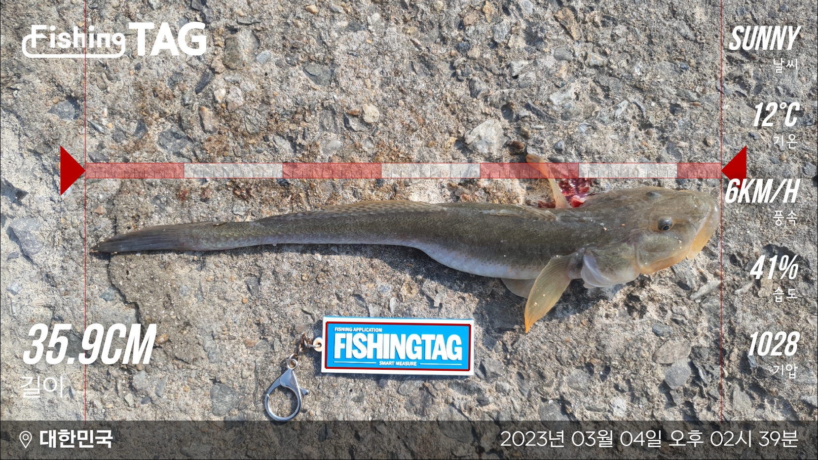 한번의 방울소리에 올라온 41cm 망둥어를 내가 올리고,