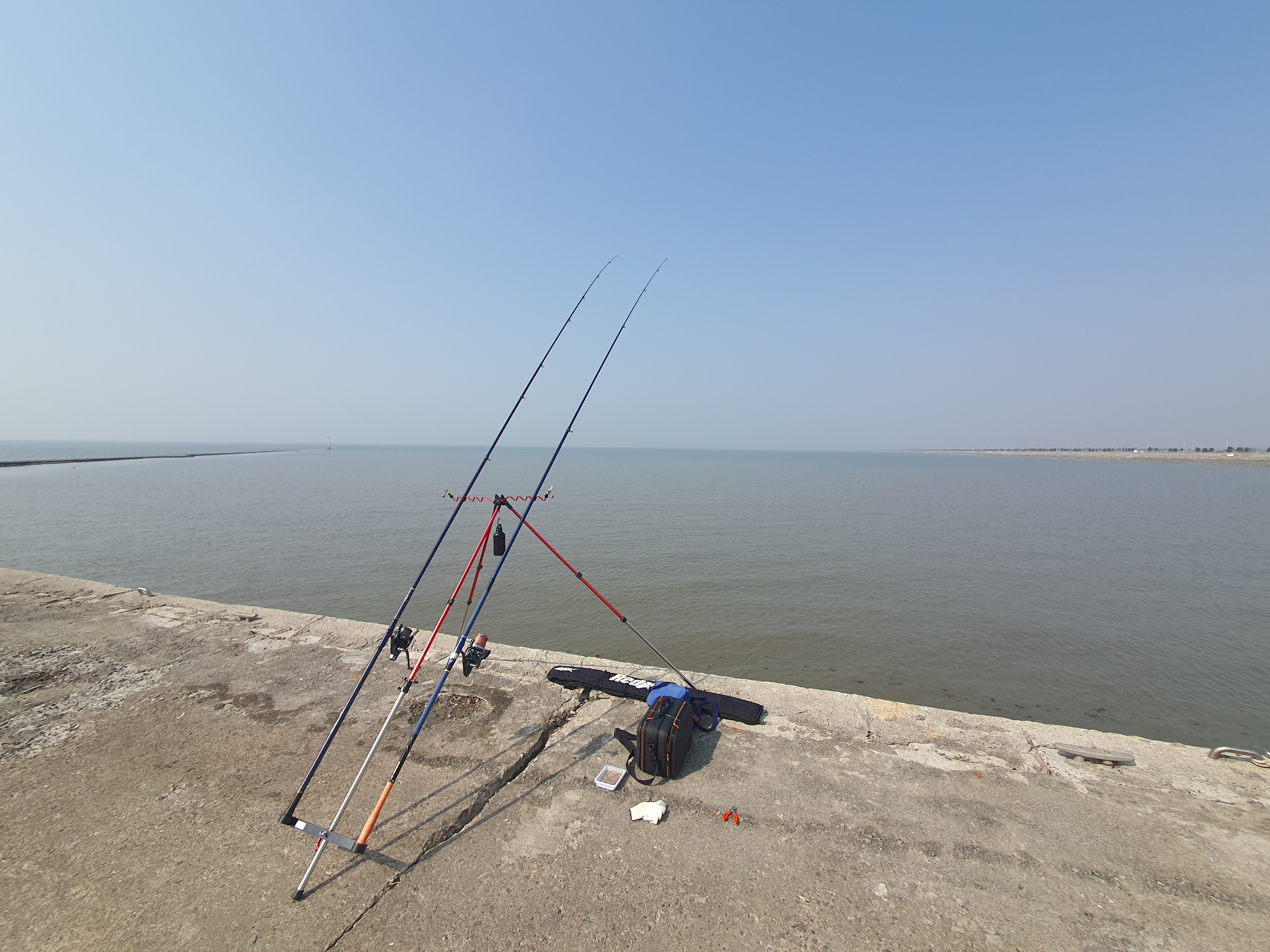 중간선착장에 도착했을 무렵에는 들물로 이미 갯벌이 사라진 상태더군요. 언제나 그렇듯 레펄 BT30-425에 BR8030과 헌터 35S-485 카멜레온에 다이와 크로스캐스트 조합으로 준비합니다.