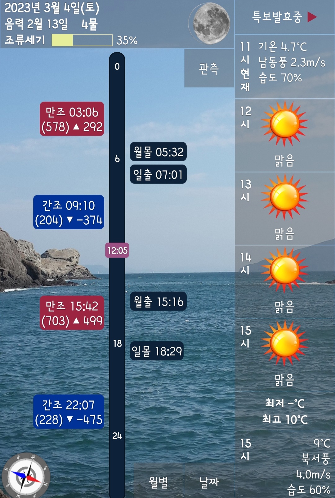 □ 바다상황 : 바람 3단이하, 파도 없음