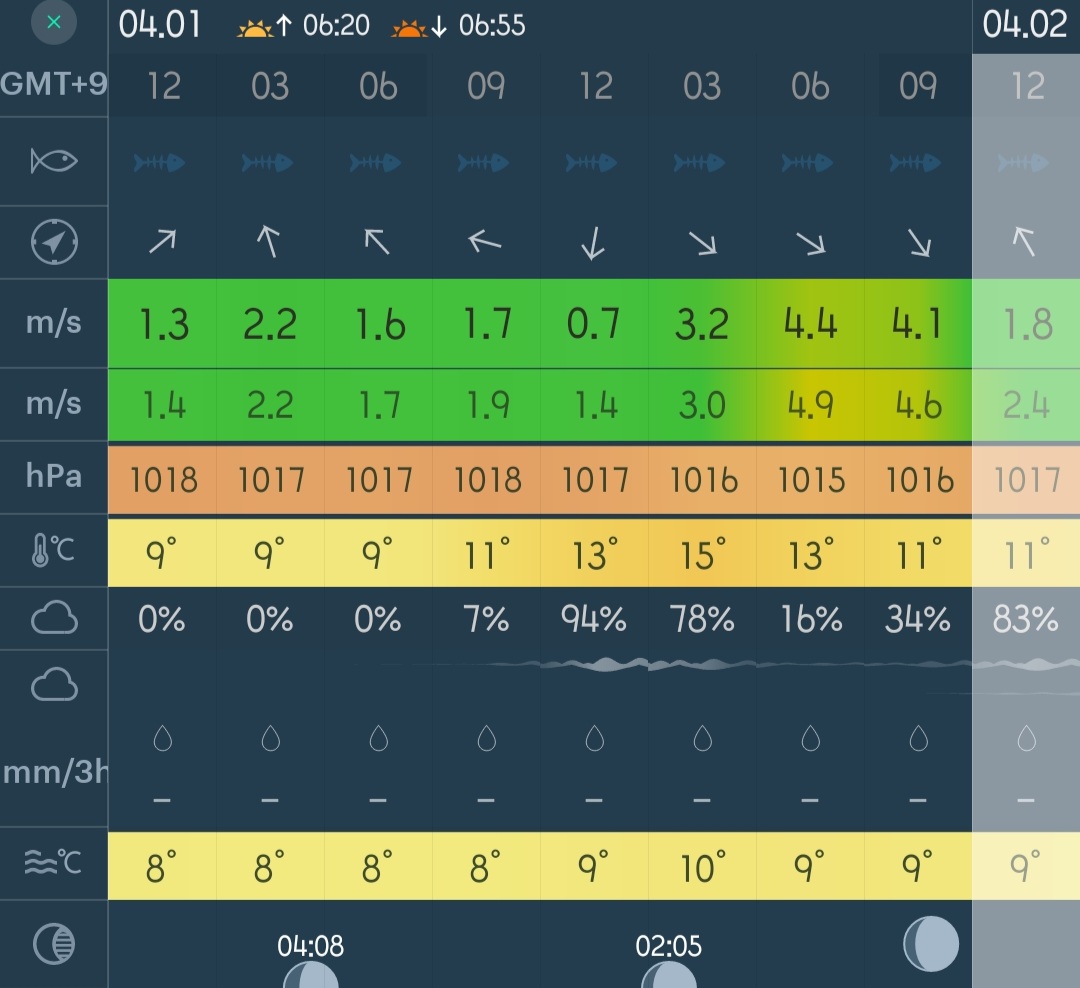 □ 바다상황 : 바람 3단 이하, 파도 낮음