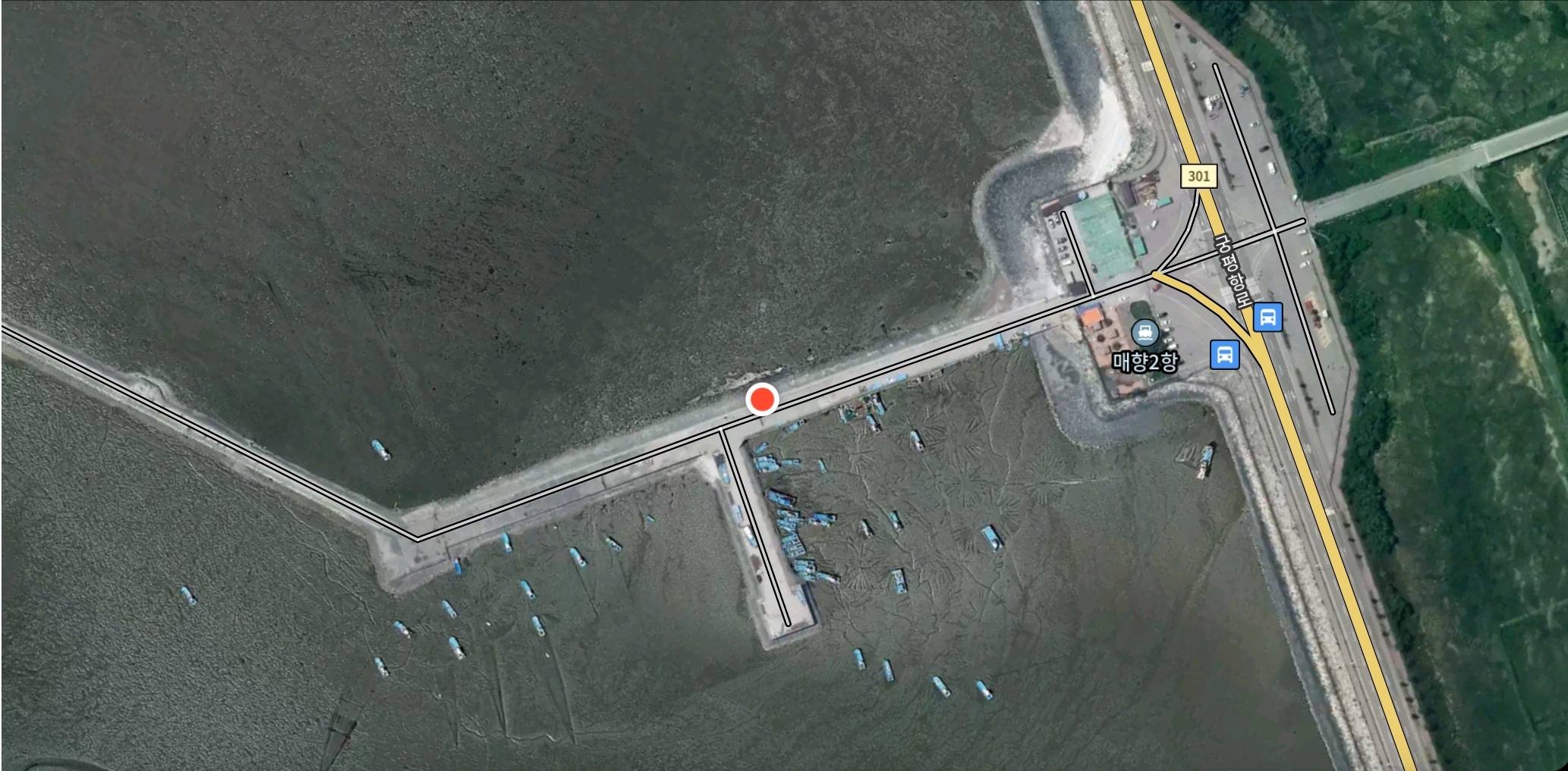 지도 어플에서는 매향2리어촌계포구(네이버지도) 또는 매향2항(카카오맵)으로 검색되며, T맵으로는 화옹방조제로 검색하면 해당위치로 안내합니다.