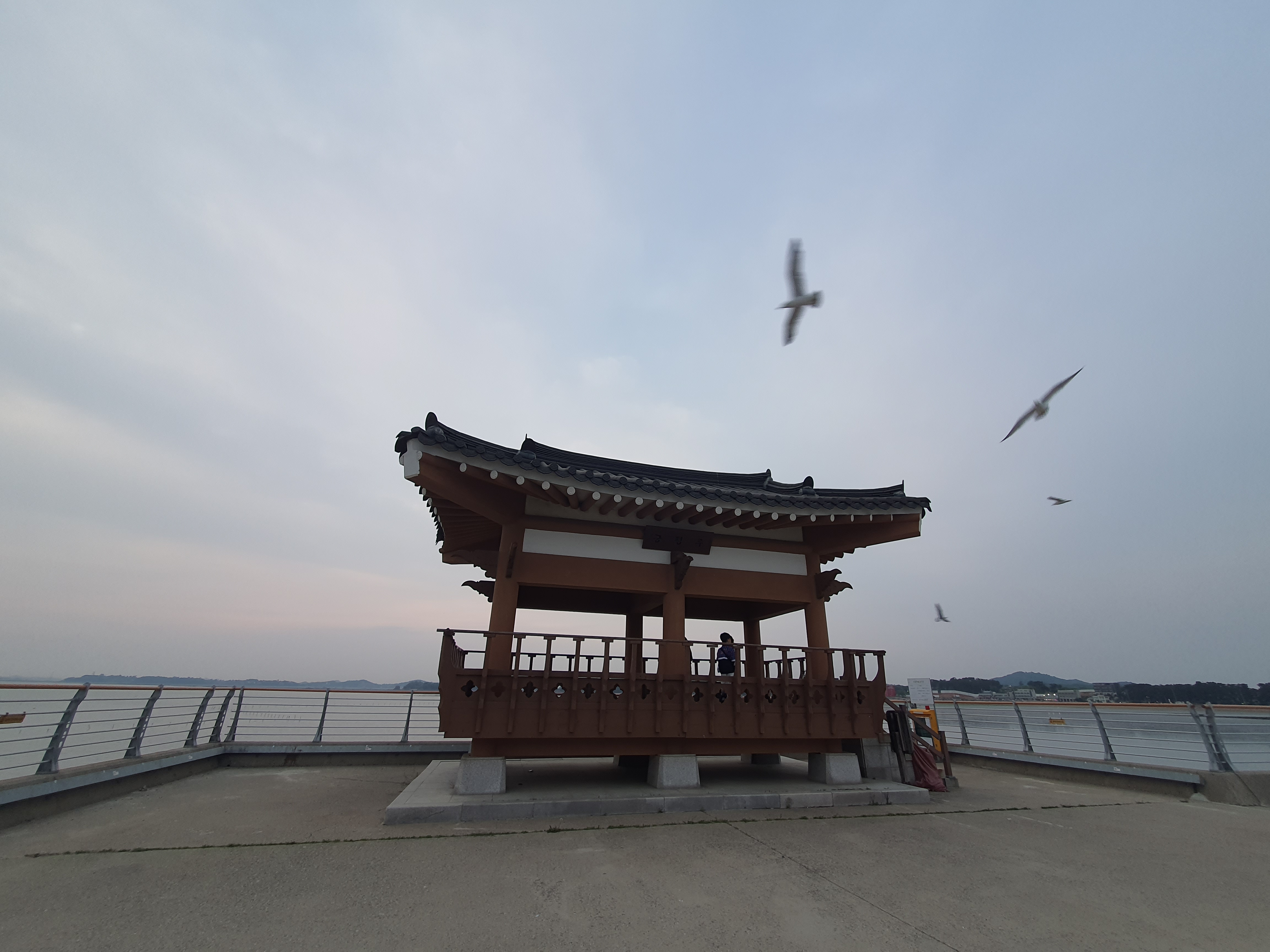 둘이서 엄첨 많이 먹었더니 배가 불러 소화도 시킬겸 방파제를 다녀옵니다. 중간에 궁평루에서 한컷!