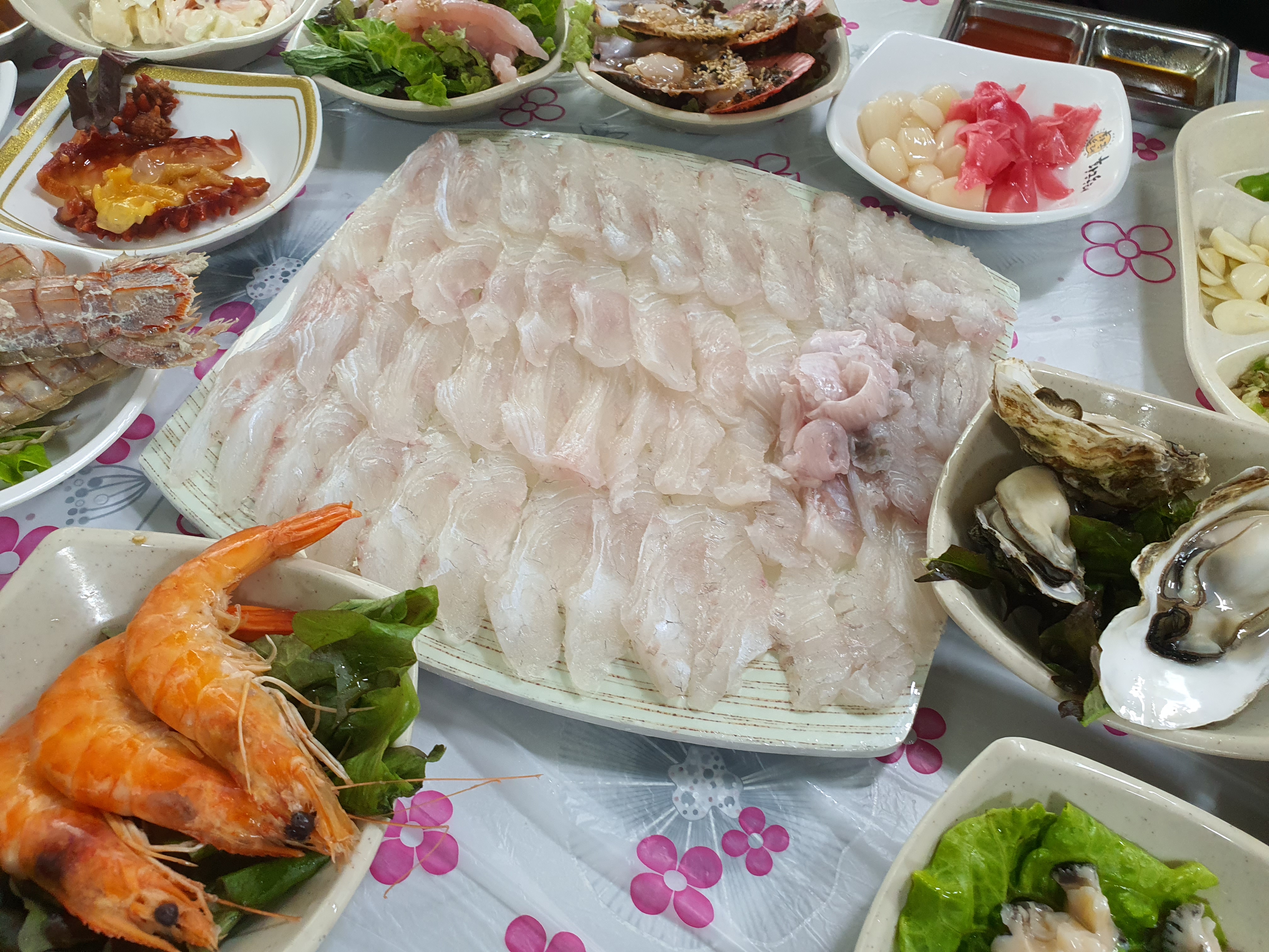 주중이라 그런지 사람들이 별로 없더군요. 둘러보다가 어수산이라는 곳에서 회를 주문합니다. 가격 흥정도 하니 현금 계산과 함께 깎아주시네요.